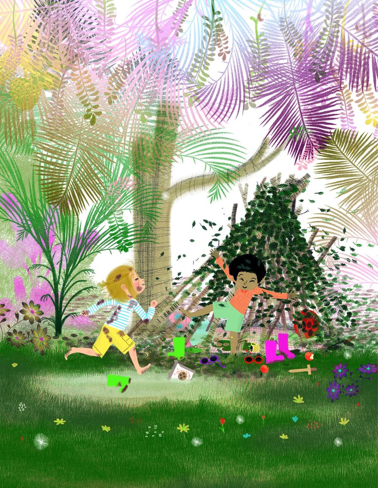 Ein wunderschönes Bilderbuch von Coppenrath. Zwei Freunde, ein gewöhnlicher Nachmittag bei gutem Wetter... "Mama, dürfen wir raus?“ mit dieser simplen Frage beginnt ein Abenteuer, wie es nur zwei kleine Strolche erleben können. Mehr als ein Garten, eine Decke und Proviant sind nicht nötig, und schon befindet man sich im tiefsten Dschungel und beweist seinen Mut in der Nacht, wenn die Wölfe heulen. Dem Künstlerpaar Jenny und Jesús Verona gelingt es, eine Alltagsgeschichte in reizvoll modernen Bildern und mit wenigen, treffenden Worten zu erzählen. Wir brauchen mehr von solchen Bilderbuch-Geschichten, die jeder selbst erleben kann, der nur genug Fantasie hat!