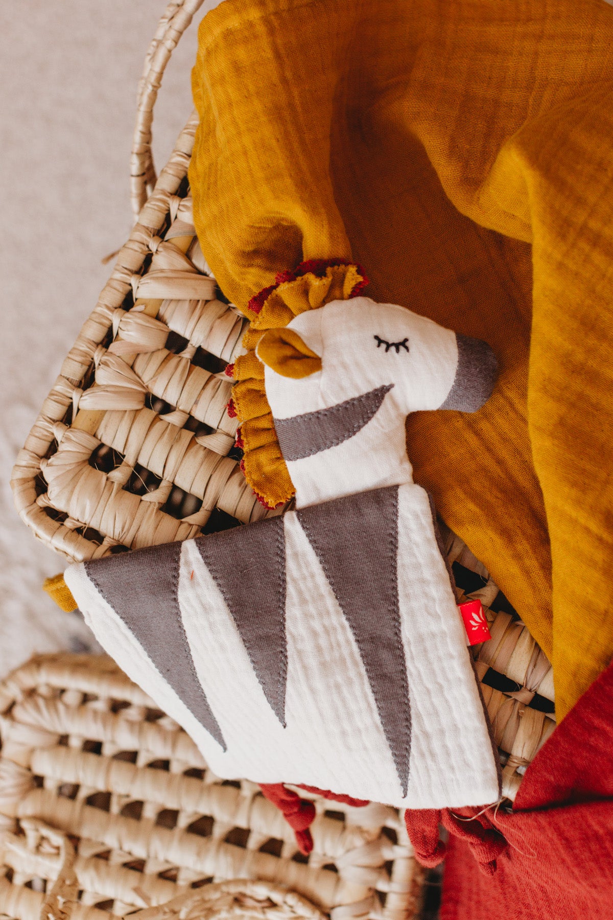 Das kleine Knister Zebra in schön gestreifter Stoffkombinationen weckt das akustische Interesse deines Kindes.