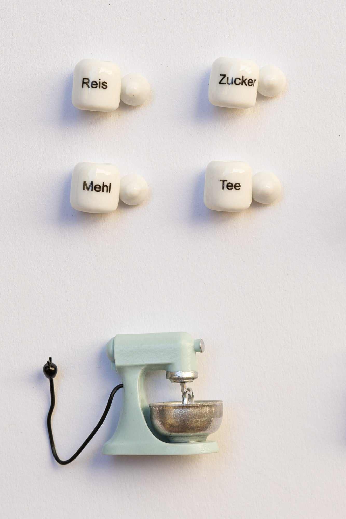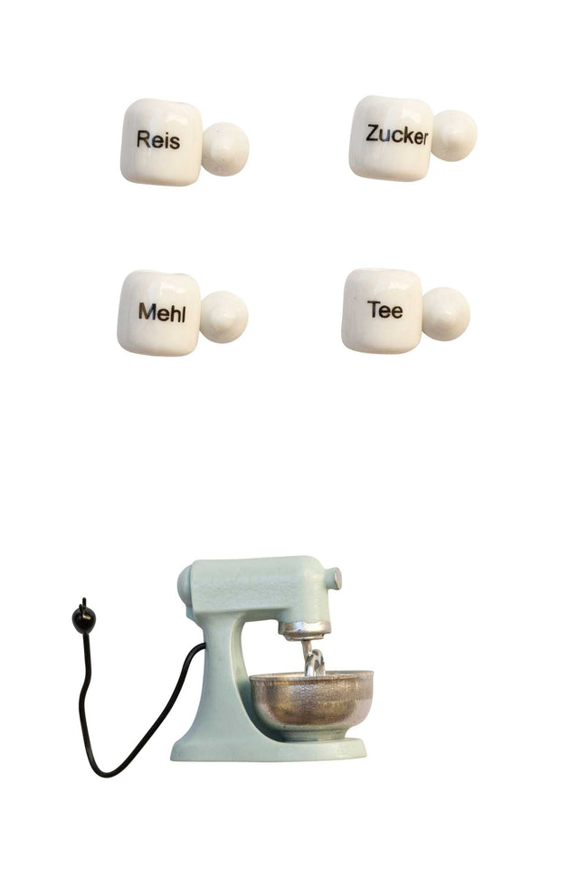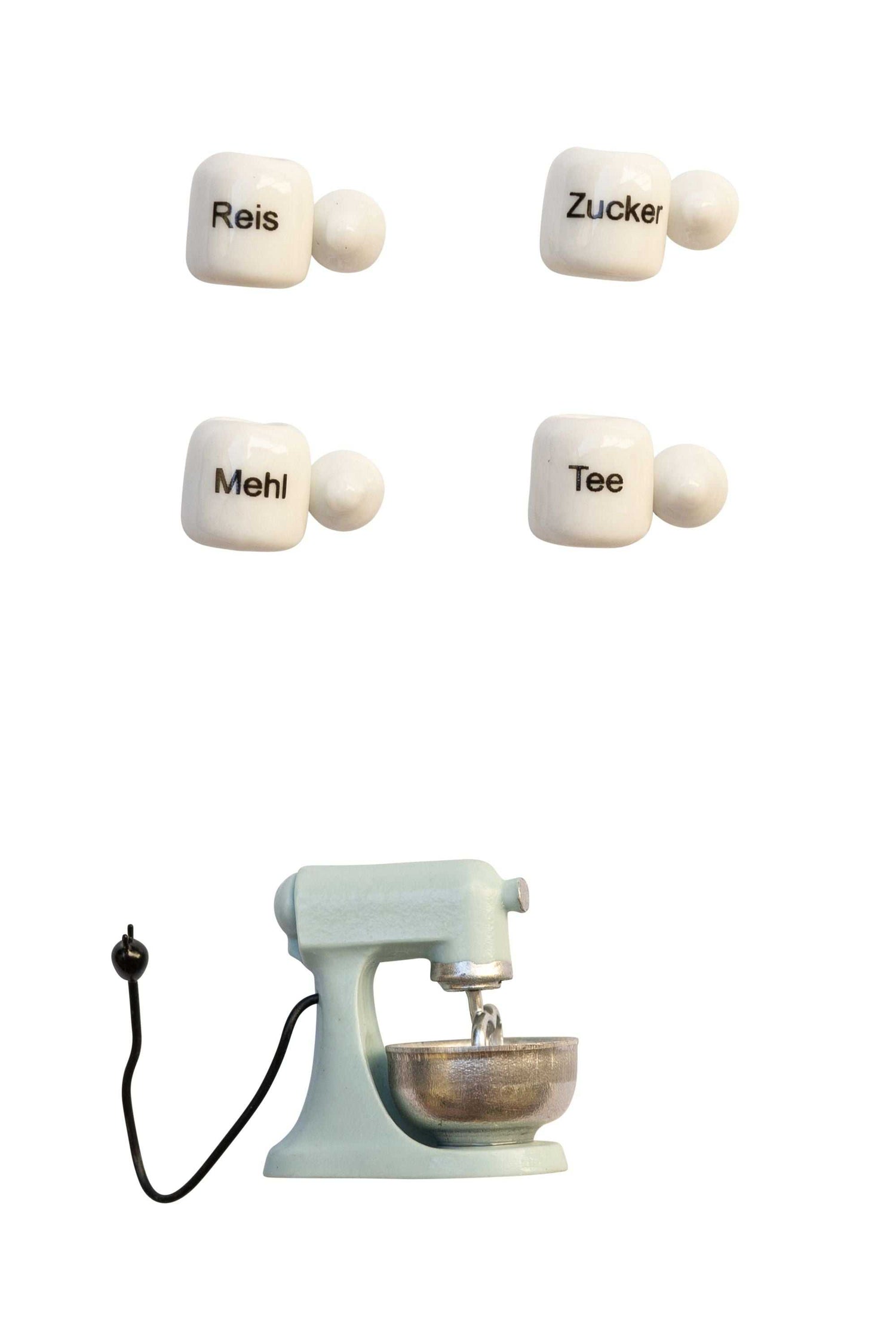 Der kleine Wichtel liebt es in der Küche zu werkeln. Mit dem Küchenset backt er die allerbesten Weihnachtskekse. (Küchenmaschine ca.3 x 3 x 2 cm/ Dosen 4 Stück 1,2- 1,8 cm) Holen Sie sich die skandinavische Wichtel- Tradition ins Haus. In der Vorweihnachtszeit zieht ein kleiner Wichtel ins Haus ein und wohnt hinter einer Wichteltür direkt über der Fußleiste. Der kleine Wichtel hilft bei den Vorbereitungen für Weihnachten, hin und wieder treibt er aber auch Schabernack. Er ist nachtaktiv und kommt nur aus seinem Versteck, wenn alle im Haus schlafen. ACHTUNG: Die Wichteltür darf niemals geöffnet werden!!!! Denn wenn jemand den Wichtel sieht, verliert er seine Zauberkraft. Der kleine Wichtel kommuniziert über Briefe mit den Kindern, diese werden in dem Briefkasten aufbewahrt. So werden die Kinder zum Beispiel aufgefordert ein schönes Bild zu malen oder Ihr Zimmer besonders ordentlich aufzuräumen, wenn die Aufgaben erfüllt werden- erwartet die Kinder am nächsten Morgen eine kleine Überraschung. Der elterlichen und kindlichen Fantasie sind hier keine Grenzen gesetzt. In mancher Nacht backt der kleine Wichtel auch leckere Weihnachtsplätzchen oder befüllt jede Nacht eines der Adventskalendertürchen. Die Kinder werden jeden Morgen, gespannt und voller Vorfreude aufstehen, um zu sehen, was der Wichtel in der Nacht angestellt hat. Mit dem entzückendem Wichtelzubehör schaffen Sie eine fantasievolle Miniatur- Welt und eine wunderschöne Begleitung durch die Weihnachtszeit. Der Wichtel feiert in manchen Familien über das gesamte Jahr auch alle anderen Feste mit. Zum Beispiel versüßt er die Wartezeit bis zum Geburtstag oder zur Einschulung, Silvesterpartys findet der kleine Wichtel auch ganz spannend. Da, wo der Wichtel ausgezogen ist, können seine Möbel und Accessoires wunderbar für das Puppenhaus verwendet werden.