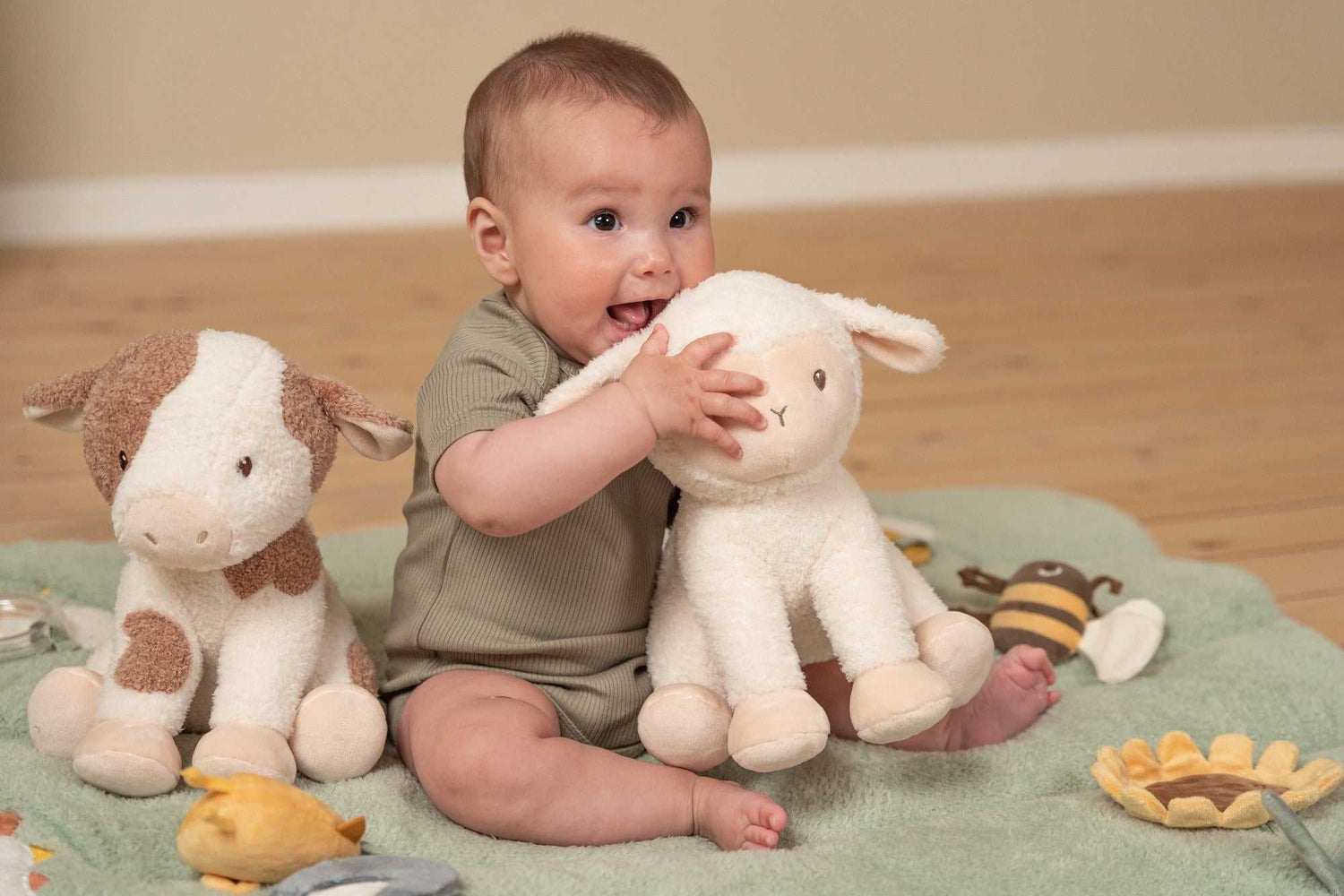Erleben Sie Abenteuer auf dem Bauernhof mit dem Kuscheltier Schaf aus der Little Farm Kollektion von Little Dutch. Mit seinem weichen Plüsch und seinen Freunden lachen Ihnen ein Huhn, eine Kuh, ein Schwein und eine Gans auf dem Bauernhof zu. Dieses süsse Schaf wird ein treuer Begleiter auf Ihren Abenteuern.