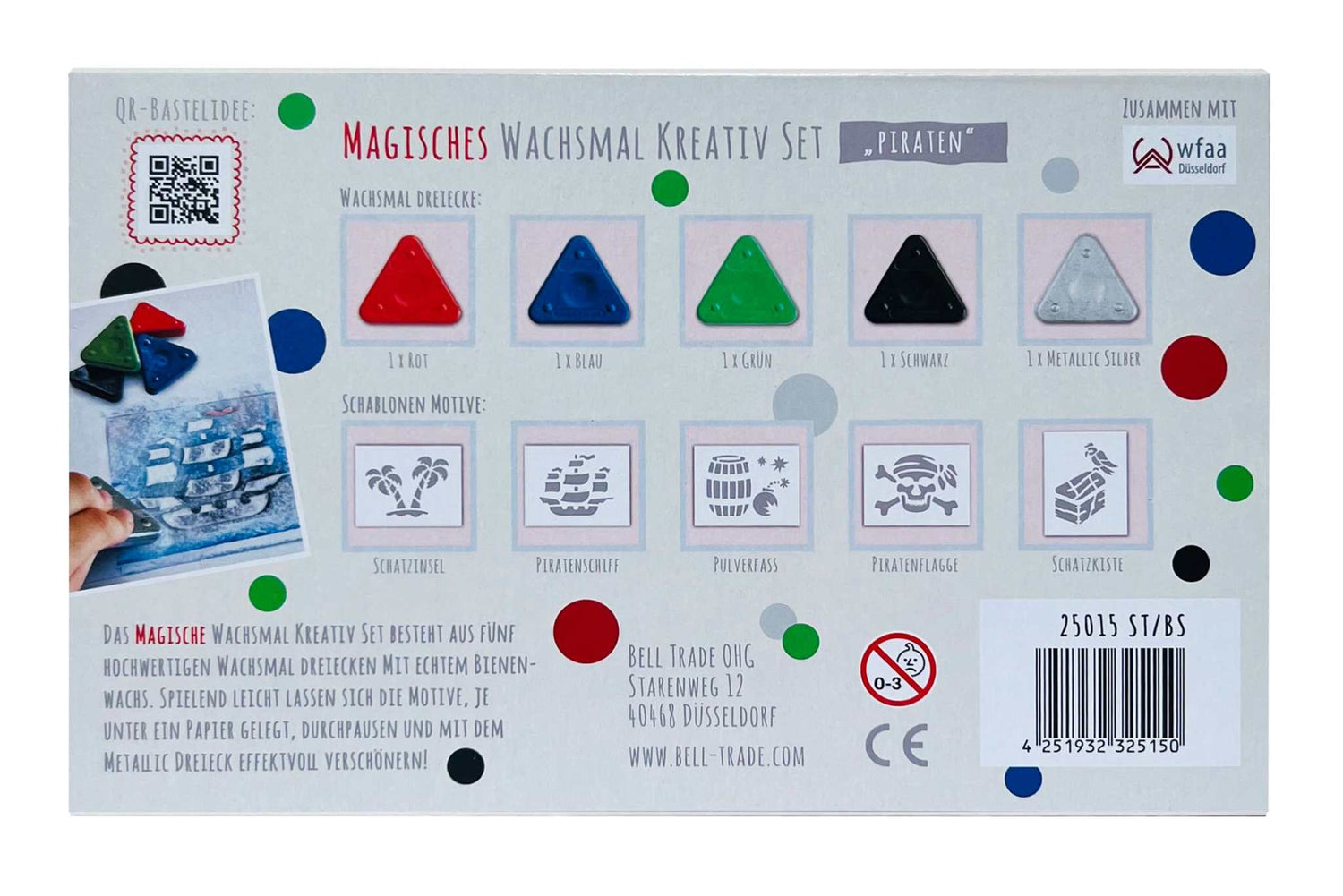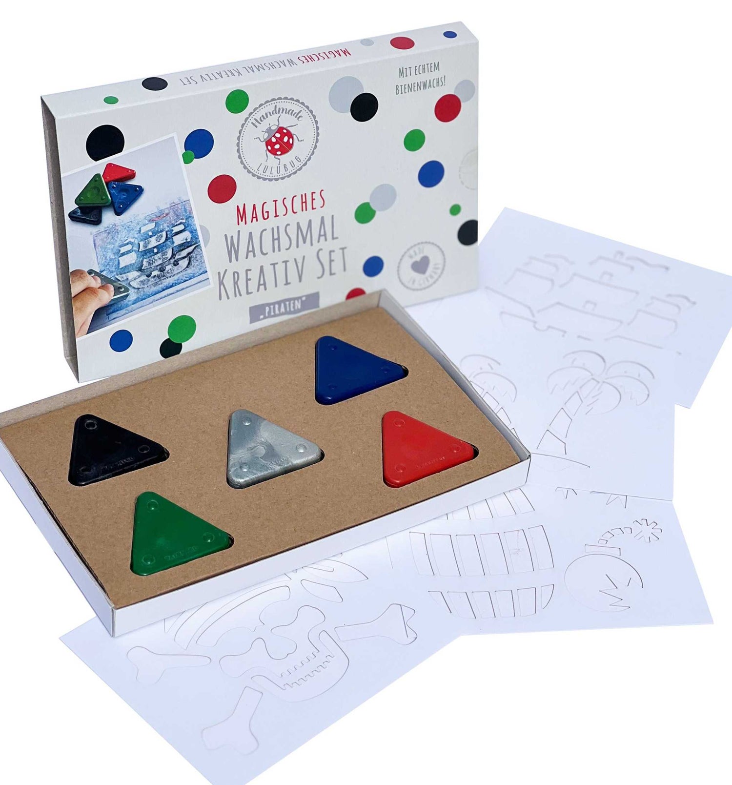 Entdecken Sie die Magie der Kreativität mit dem einzigartigen Magischen Wachsmal- Kreativ Set Pieat von Lulubug! Hergestellt in Italien und patentiert, besteht das Set aus fünf hochwertigen Wachsmal- Dreiecken in unterschiedlichen Farben. Die ergonomische Form ermöglicht eine bequeme Handhabung für Kinder, während die breite Seite zum Malen und die Spitzen zum Schreiben genutzt werden können. Im Set enthalten sind fünf kinderfreundliche Schablonen aus Papier, die mühelos unter ein Blatt Kopierpapier gelegt werden können. Durch einfaches Durchpausen entstehen im Handumdrehen beeindruckende Bilder. Verleihen Sie den Kreationen den „magischen“ Effekt, indem Sie mit der glitzernden, magischen Kreide über das Bild gehen und es anschließend mit einem Taschentuch polieren. Je mehr Sie reiben, desto „magischer“ wird das Ergebnis. Experimentieren Sie mit verschiedenen Techniken, indem Sie einen Tropfen Speiseöl auf ein Taschentuch geben um eine Aquarell-Optik zu erzeugen. Oder legen Sie Blätter, Farne oder Blumen unter das Papier und erschaffen Sie einzigartige Kunstwerke. Die langlebige Qualität der Lulubug Wachsmal- Dreiecke sorgt dafür, dass die kreative Reise Ihres Kindes lange anhält. Inhalt: * 4 Wachsmaldreiecke in den Farben: rot, blau, grün und schwarz * 1 glitzerndes, magisches Wachsmaldreieck, Farbe: metallic-silber * 5 Schablonen aus Papier (Schatzinsel, Piratenschiff, Pulverfass, Piratenflagge, Schatzkiste) * QR Code Videoanleitung * Maße der Verpackung: 22 x 13,5 x 2 cm * Lulubug Handmade * Made in Germany