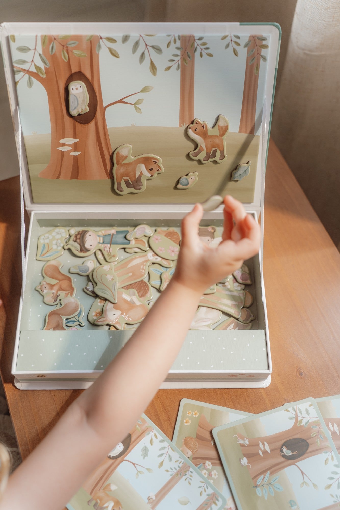 Tauche ein in die Welt des verzauberten Waldes und erlebe magische Abenteuer mit der magnetischen Spieltafel von Little Dutch.
