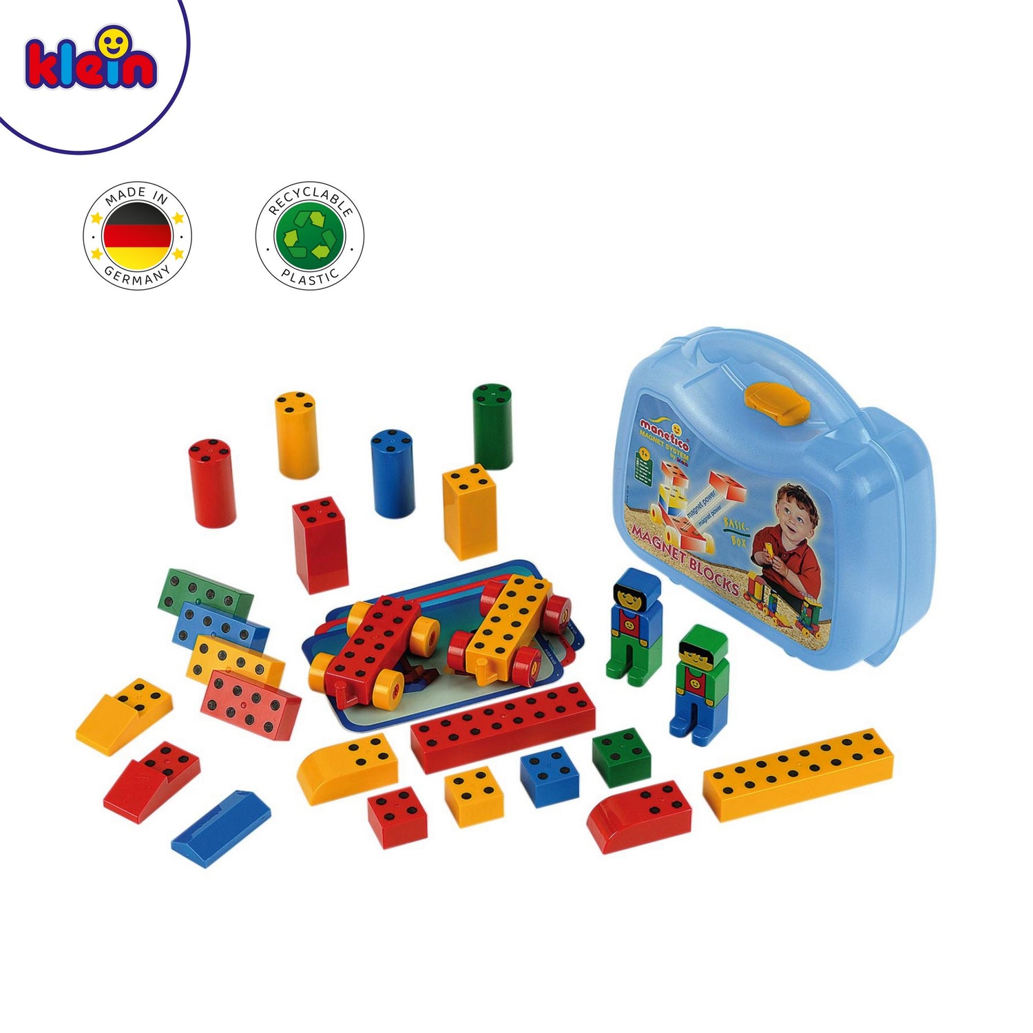 Der Theo Klein Manetico Koffer ist das ideale Set für kleine Baumeister/innen, die ihre Kreativität und Fantasie entfalten möchten. Mit insgesamt 25 verschieden geformten, magnetischen Bauklötzen bietet das Set unzählige Möglichkeiten für fantasievolle Konstruktionen. Die praktische Box enthält zudem drei Baupläne, die von den kleinen Konstrukteur/innen jederzeit kreativ erweitert werden können. So können die Kinder ihrer Vorstellungskraft freien Lauf lassen und immer wieder neue, spannende Bauwerke erschaffen. Dank der integrierten Magnete lassen sich die Bausteine kinderleicht zu stabilen Konstruktionen verbinden. Dies fördert nicht nur die Hand-Augen-Koordination der Kinder, sondern schult auch ihre Motorik und Kreativität. Das hochwertige Magnet-Spiel bietet somit nicht nur Spaß, sondern auch einen pädagogischen Mehrwert. Der Theo Klein Manetico Koffer wird in Deutschland hergestellt und entspricht somit höchsten Qualitätsstandards. Mit Maßen von 19 cm x 8,5 cm x 21 cm ist der Koffer handlich und leicht zu transportieren. Geeignet ist das Set für Kinder ab einem Jahr, sodass bereits die Kleinsten von den vielfältigen Möglichkeiten des Magnetbaus profitieren können. Insgesamt ist der Theo Klein Manetico Koffer ein ideales Spielzeug, um die Kreativität und motorischen Fähigkeiten von Kindern zu fördern. Durch das spielerische Bauen mit magnetischen Bausteinen können die kleinen Baumeister/innen ihre Vorstellungskraft entfalten und dabei wichtige Fähigkeiten für ihre Entwicklung trainieren. Ein pädagogisch wertvolles Spielzeug, das sowohl Eltern als auch Kinder begeistern wird.