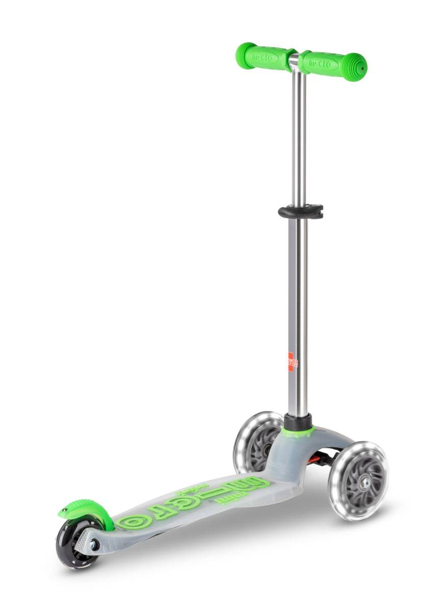 Der beliebte Klassiker unter den Kinder-Scootern präsentiert sich nun in einer noch kompakteren Ausführung. Die coolen LED-Räder verleihen dem Kinder-Scooter MINI MICRO DELUXE FLUX LED Neon Green nicht nur einen stylischen Look, sondern bieten auch zusätzliche Sicherheit in der Dunkelheit. Das patentierte Lenksystem fördert das Gleichgewicht, die Koordination und die Motorik des Kindes, während der rutschfeste Belag auf dem Trittbrett einen sicheren Stand gewährleistet. Dank der höhenverstellbaren Lenkstange lässt sich der Scooter optimal an die Körpergröße anpassen und garantiert somit maximalen Fahrkomfort.