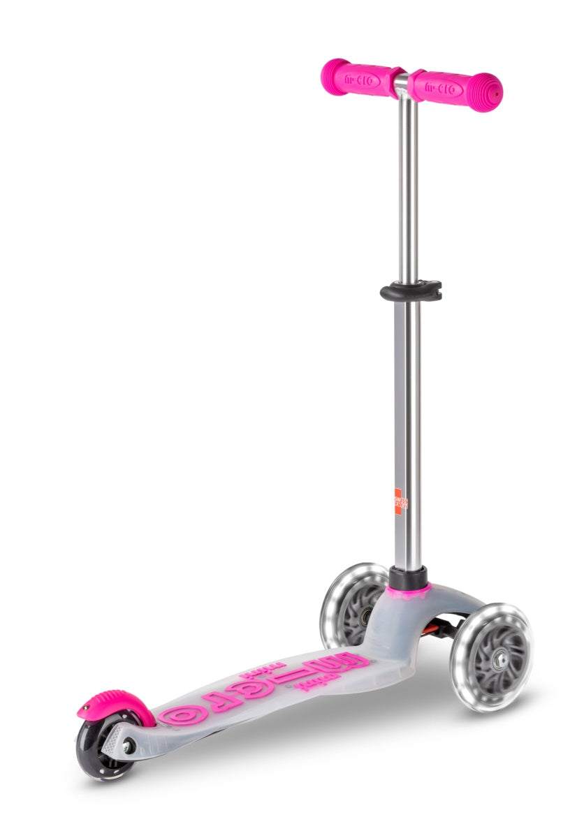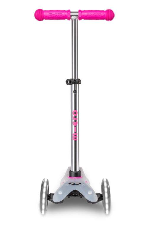 Der beliebte Klassiker unter den Kinder-Scootern präsentiert sich nun in einer noch kompakteren Ausführung. Die coolen LED-Räder verleihen dem Kinder-Scooter MINI MICRO DELUXE FLUX LED Neon Pink nicht nur einen stylischen Look, sondern bieten auch zusätzliche Sicherheit in der Dunkelheit. Das patentierte Lenksystem fördert das Gleichgewicht, die Koordination und die Motorik des Kindes, während der rutschfeste Belag auf dem Trittbrett einen sicheren Stand gewährleistet. Dank der höhenverstellbaren Lenkstange lässt sich der Scooter optimal an die Körpergröße anpassen und garantiert somit maximalen Fahrkomfort.