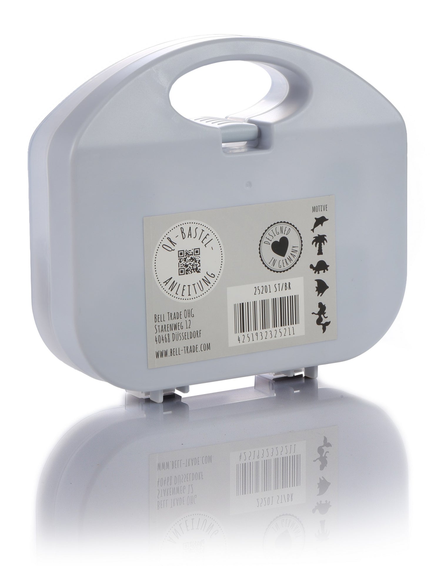 Tauchen Sie ein in die faszinierende Welt des Bastelns mit dem einzigartigen Stanzerkoffer von Lulubug! Dieser entzückende Begleiter für junge Künstler ist nicht nur äußerst praktisch für unterwegs, sei es zu Freunden, ins Restaurant oder auf Reisen, sondern eröffnet auch eine grenzenlose Welt der Kreativität. Der hochwertige Aufbewahrungskoffer sorgt dafür, dass die Stanzer stets ordentlich sortiert und griffbereit sind. Stanzen, Basteln oder Spielen – erleben Sie mit dem Stanzerkoffer phantasievolle Stunden voller gestalterischer Freiheit! 5 unterschiedliche Motive und Größen zum Thema „Unter Wasser“ Geeignet für Papier von 80 – 150 gr/m² Hochwertiger, robuster Aufbewahrungskoffer Für Kinder ab 3 Jahren Ideales Geschenk für den Kindergeburtstag Das Motivstanzerset ist der perfekte Begleiter für junge Künstler ab 3 Jahren! In einem hochwertigen, robusten Aufbewahrungskoffer finden Sie 5 liebevoll gestaltete Stanzer, darunter Meerjungfrau, Delfin, Palme, Fisch und Schildkröte. Die präzisen Schnitte dieser Stanzer ermöglichen es, aus Papier von 80-150 gr/m² viele gestalterische Ideen umzusetzen. Der Koffer bietet nicht nur eine geordnete Aufbewahrung, sondern ist auch stabil und kinderfreundlich gestaltet. Damit wird Basteln zu einem sicheren und spaßigen Erlebnis für die Kleinen. Der Koffer ist zudem ideal für unterwegs geeignet – sei es im Restaurant, auf Reisen oder bei einem Besuch bei Freunden. Durch seine handliche Größe und die sorgfältige Sortierung der Stanzer wird kreativer Spaß überall möglich. Entfachen Sie die Fantasie der kleinen Künstler und schenken Sie ihnen mit diesem Stanzerkoffer die Möglichkeit, wunderschöne Kunstwerke zu erschaffen. Erleben Sie kreativen Spaß und gestalten Sie eine fröhliche „Unterwasserwelt“ – für unvergessliche Bastelmomente, die die kindliche Kreativität fördern! Das ist drin: 5 Stanzer Motive: Meerjungfrau, Delfin, Palme, Fisch, Schildkröte 1 robuster Koffer QR Bastelanleitung Lulubug Handmade Designed in Germany Modell: 25201 Maße: 19 x 18 x 4,5 cm Lieferumfang: 5 Stanzer Altersempfehlung: ab 3 Jahre
