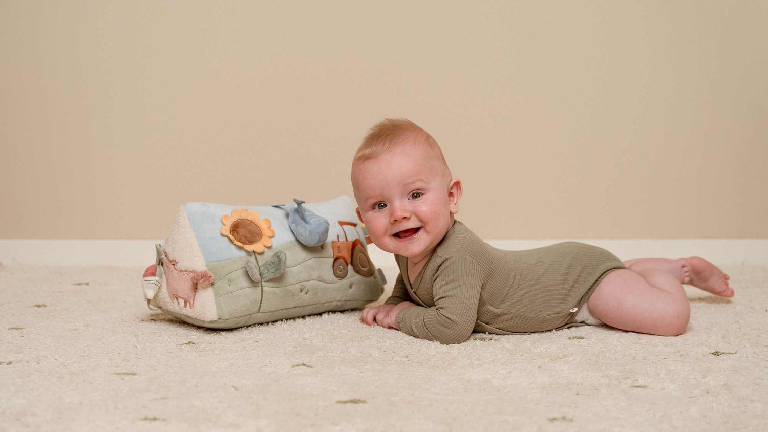 Diese vielseitige Aktivitätsdreieck nimmt kleine Kinder mit auf Abenteuer, während sie auf dem Bauch liegen. Unterwegs gibt es viel zu entdecken, von den knisternden Flügeln des Huhns bis hin zu einem Spiegel und einer rasselnden Gießkanne. Das Kissen verfügt über spielerische Funktionen und lustige Texturen, die die Sinne und die Vorstellungskraft Ihres Babys anregen. Aus der Little Farm Kollektion von Little Dutch. Artikel: LD8823 Material: 100% Polyester waschbar bei 30°C im Schonwaschgang
