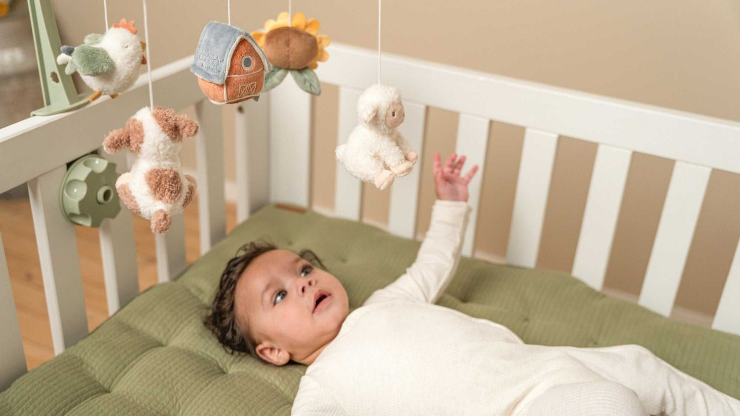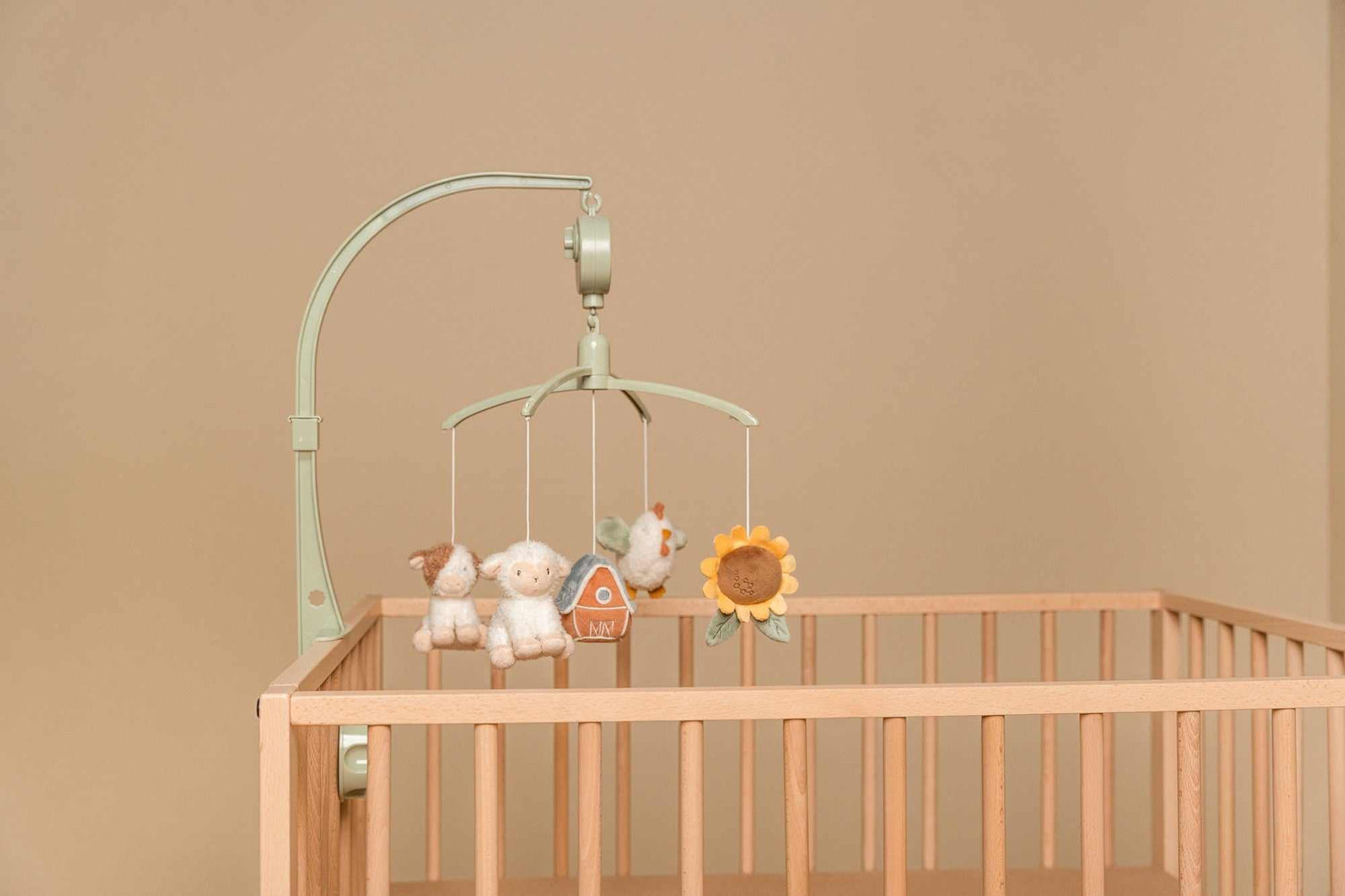 Diese schöne Little Dutch Musikmobile wirkt beruhigend auf Babys dank des lieblichen Schlaflieds. Am Mobile hängen fünf Spielzeuge aus der Little Farm Kollektion. Babys schauen gerne der Bewegung dieser Spielzeuge zu, was ihre visuelle Entwicklung fördert. Das Musikmobile ist ab der Geburt geeignet und einfach am Kinderbett oder Laufstall zu befestigen.