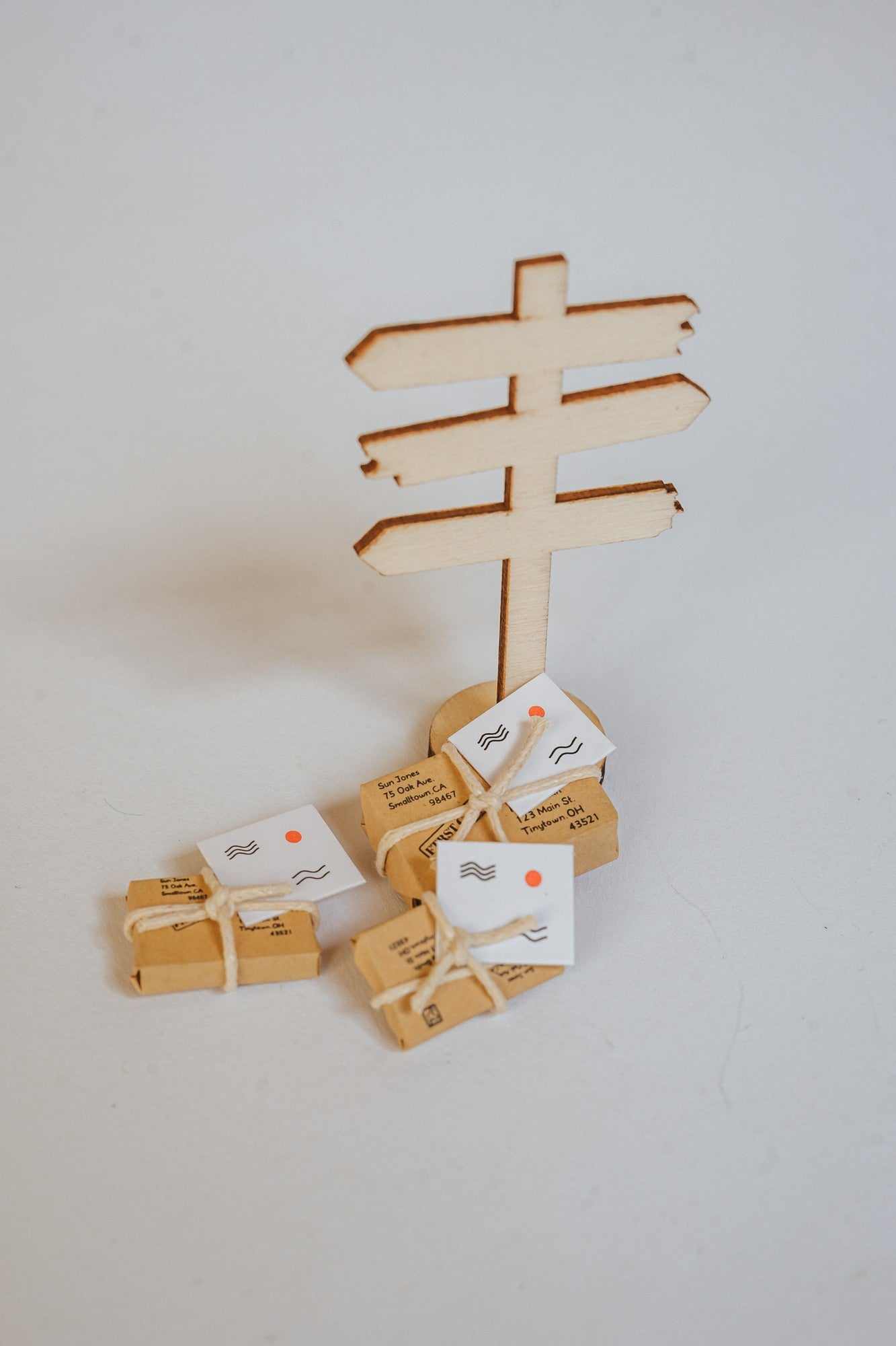 Der kleine Wichtel stellt jedes Jahr seinen selbstgebauten Wegweiser auf.
