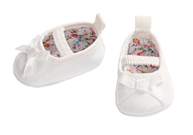 Diese Schuhe passen den meisten marktgängigen Puppen der Größe 38-45 cm mit Füßen von max. ≈ 7 x 4 cm. Farbe: weiß