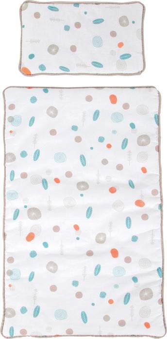 Die geschlechtsneutrale, wendbare Bettwäsche mit einer großzügigen Bettdecke bietet auch größeren Puppen und Plüschtieren bis zu 46 cm Größe ein gemütliches Schlafgefühl.