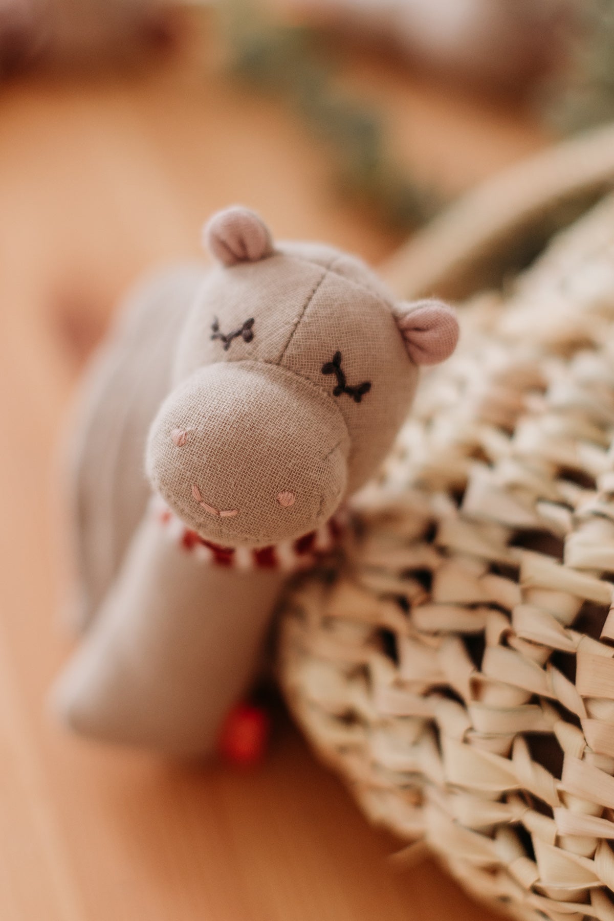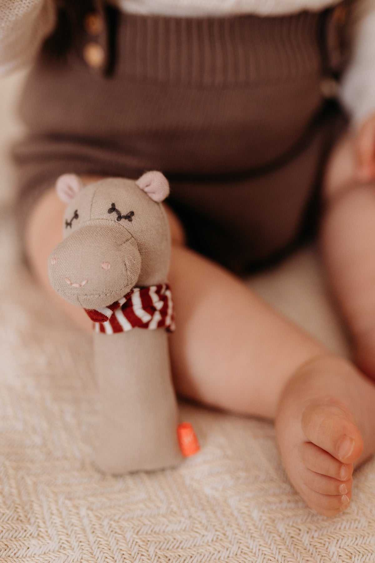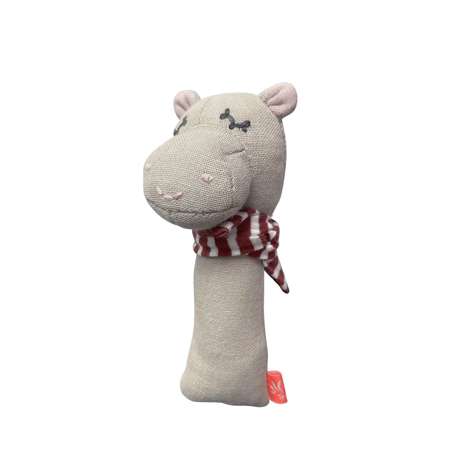 Das Quietschspielzeug ist ein kleines, weiches Spielzeug in der Form eines Hippos. Durch Zusammendrücken oder Drücken des Spielzeugs erzeugt es quietschende Geräusche. Es spricht die Aufmerksamkeit von Babys an, regt ihre Neugier an und fördert spielerisch ihre Sinne und motorischen Fähigkeiten. Maße: 14 x 6 x 6 cm Altersempfehlung: 3M Pflege: Mit einem feuchten Tuch reinigen. Modell: 2415301 Material: 100% Biobaumwolle
