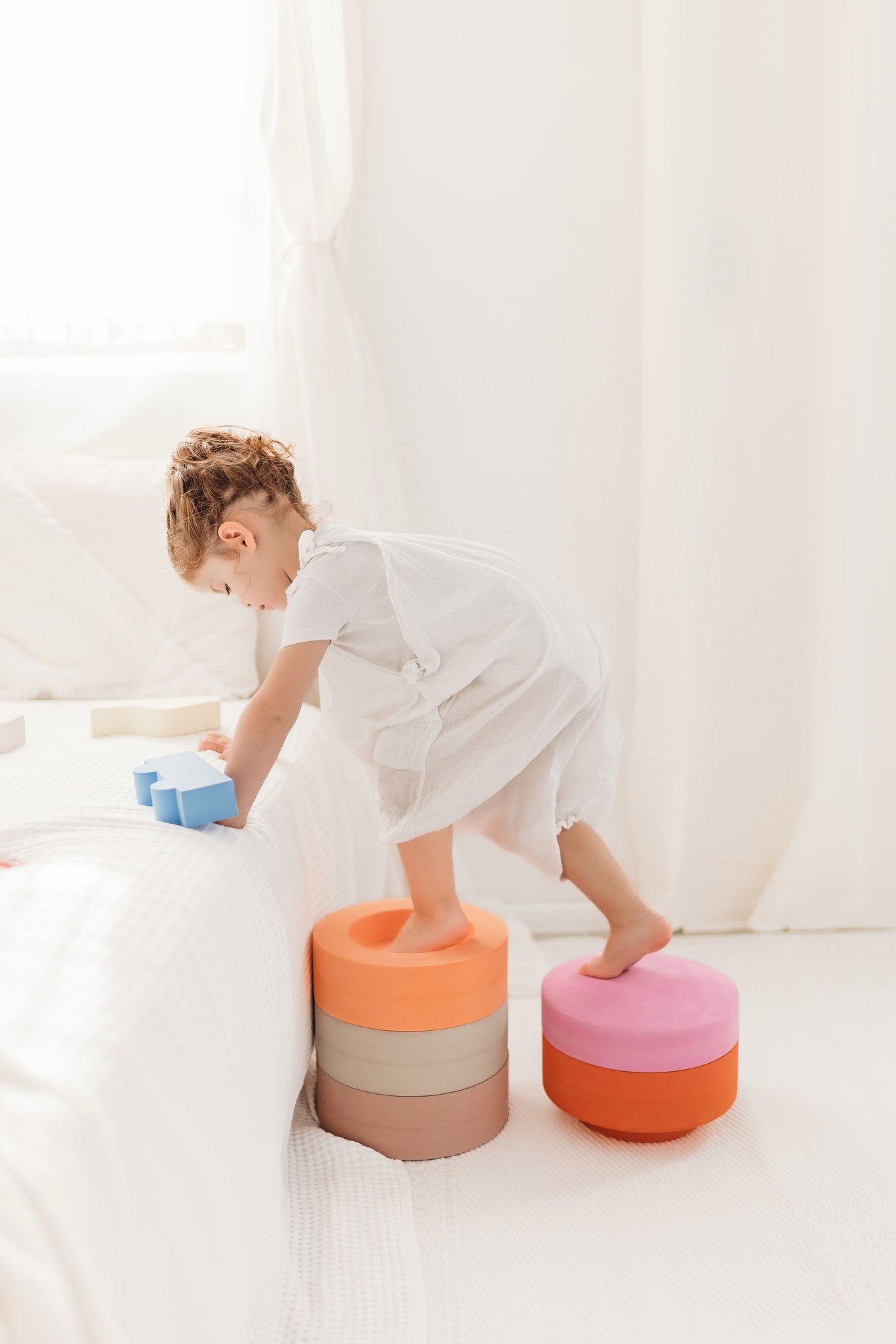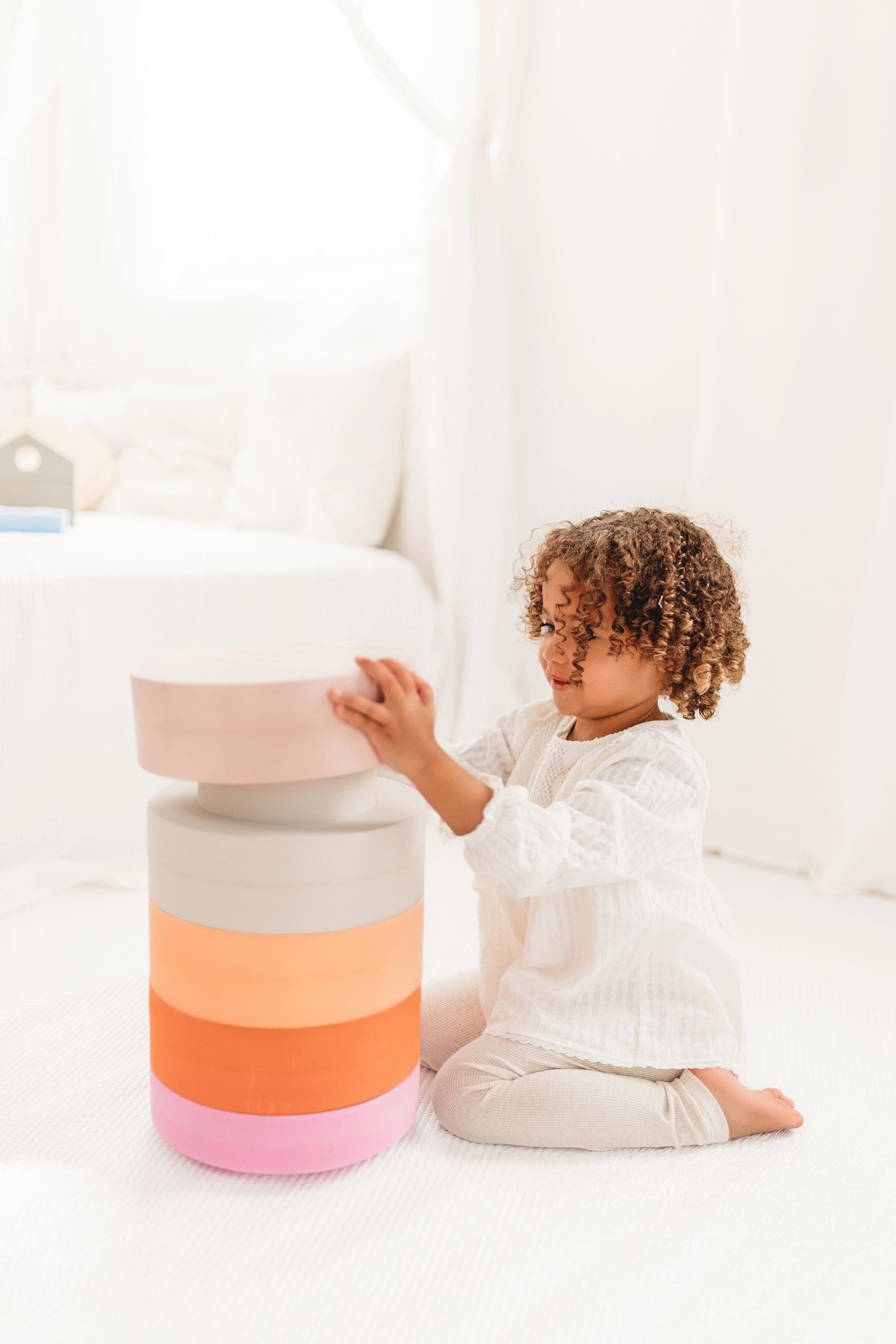 Der Rainbow Stuhl von Moes besteht aus 5 verschiedenen Teilen, die nicht nur voneinander getrennt werden können sondern auch in täglichen Gewohnheiten dienen können.