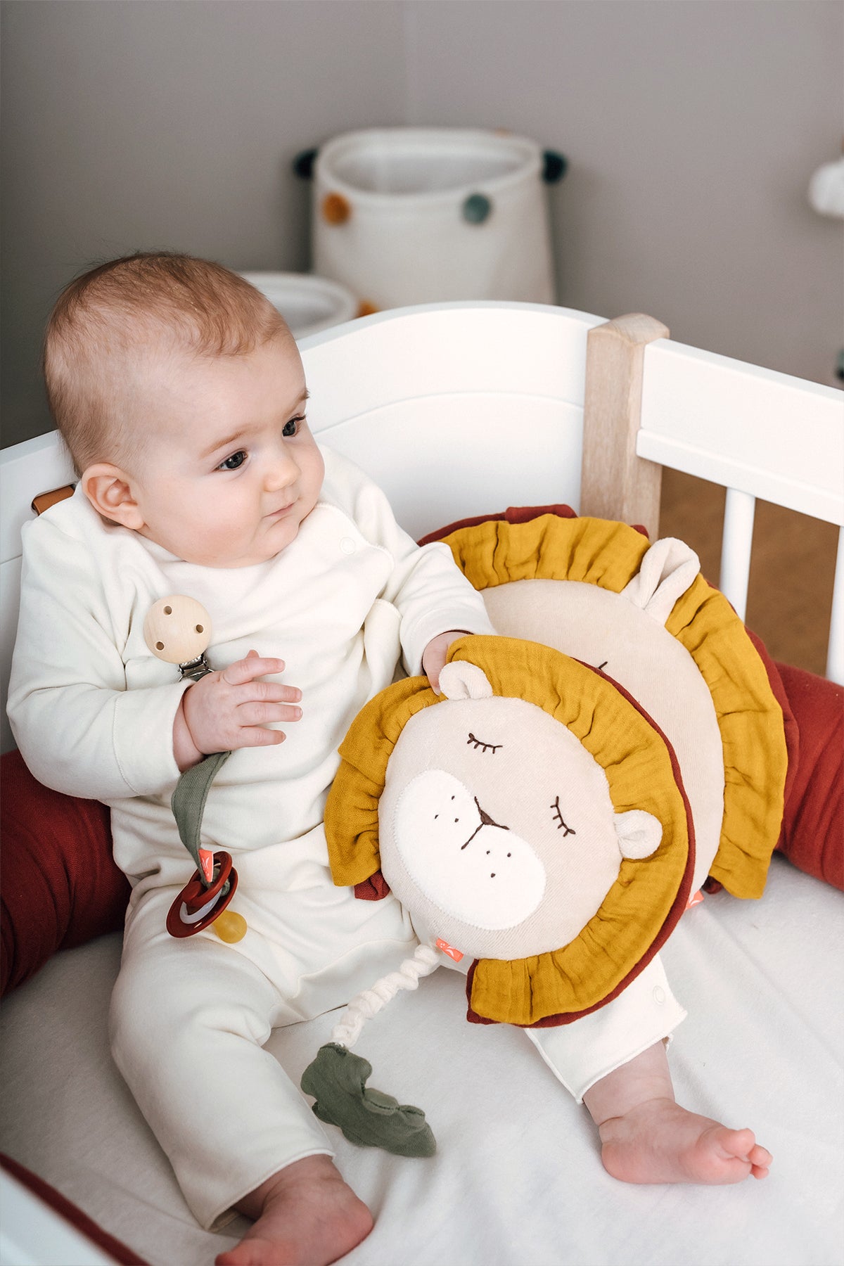 Die Spieluhr Löwe von Kikadu wird Ihr Baby sanft in den Schlaf begleiten.