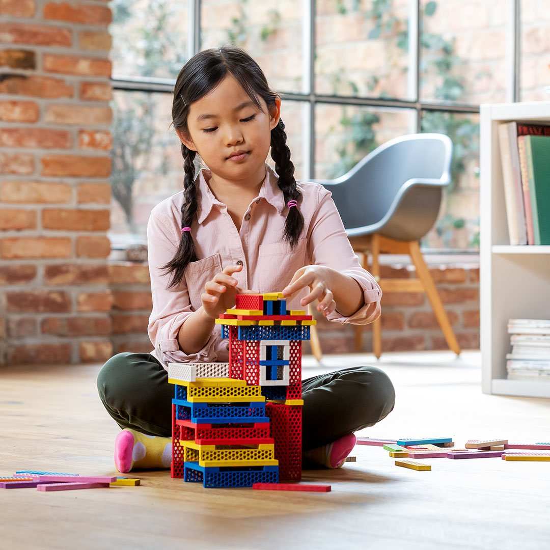 Die Bausteine sind bewusst einfach gehalten, um die Kreativität der Kinder zu fördern und ihnen maximale Freiheit beim Bauen zu ermöglichen.