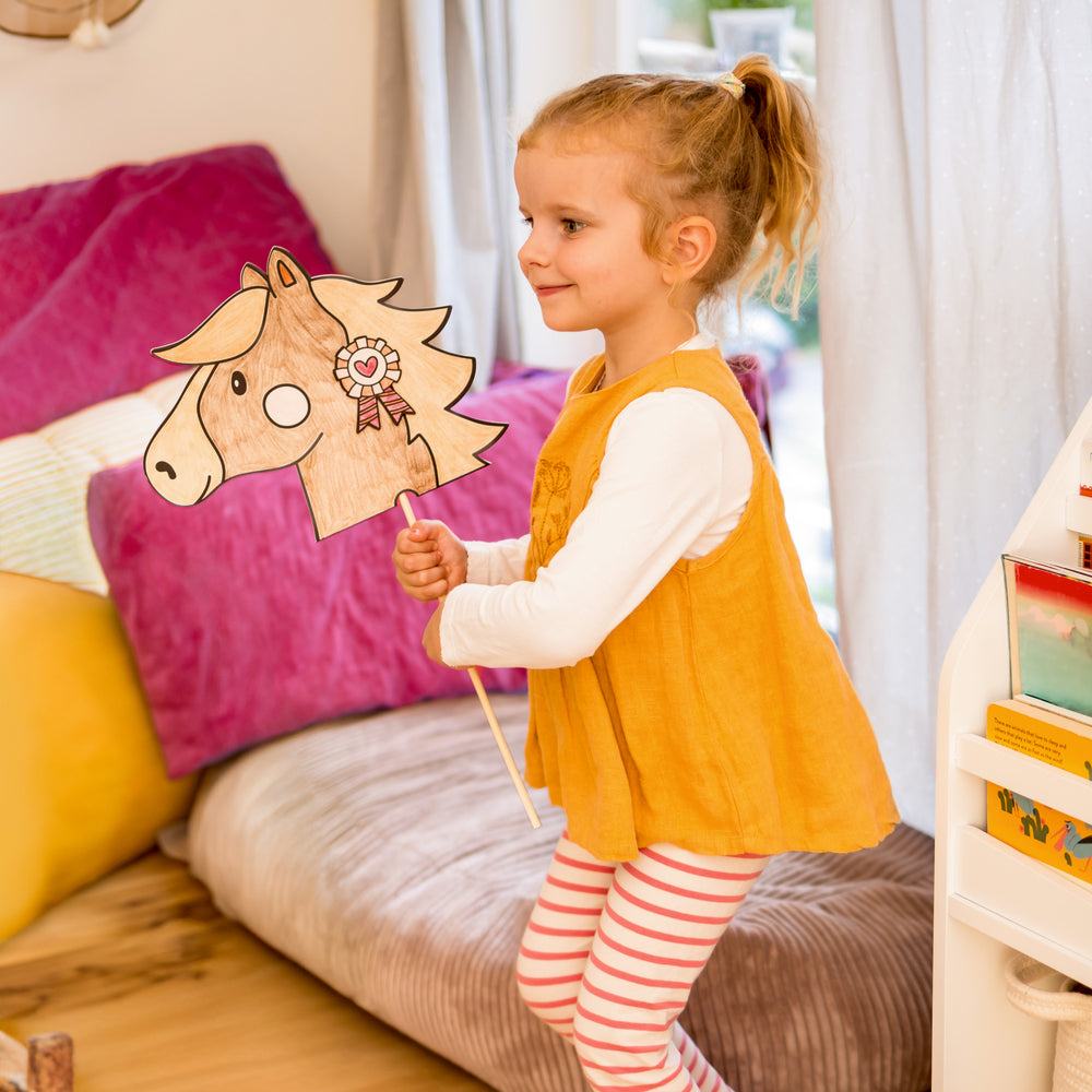 Mein kleiner Ponyhof: Das Steckenpferd-Bastelset von Die Spiegelburg ist das ideale Kreativset für kleine Pferdefreunde.