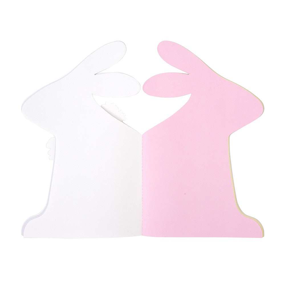 Das Buch hat 32 farbige Seiten in Pink, Blau, Gelb und Weiß.
