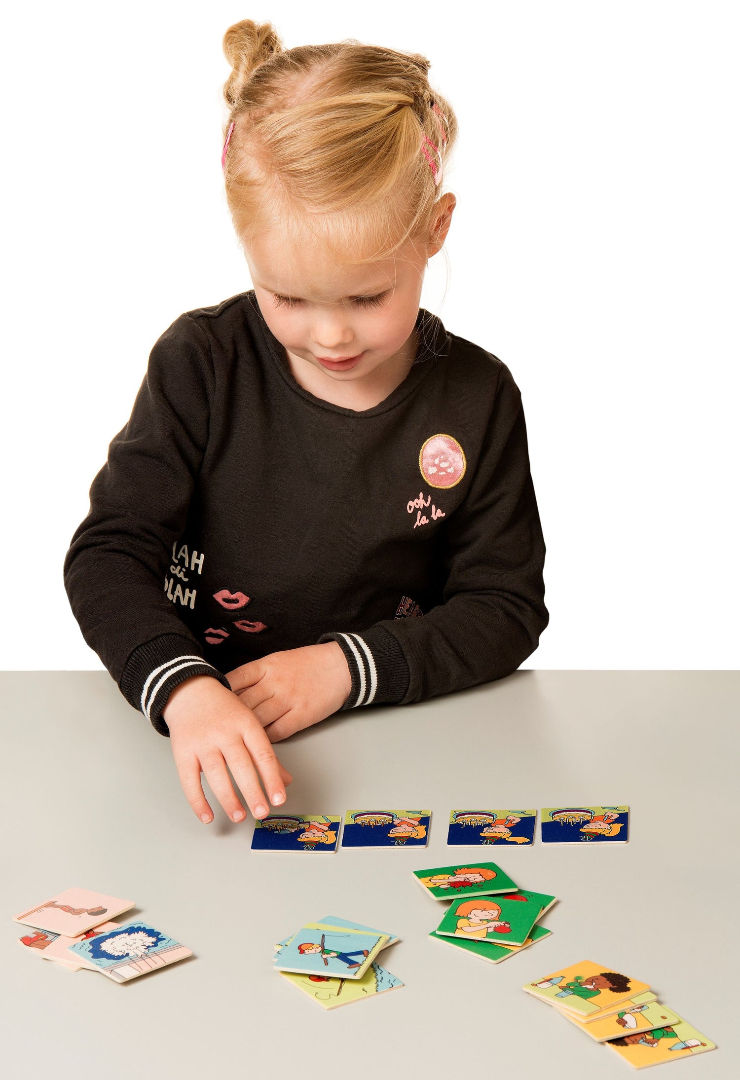 Lege 4 Karten in einer logischen Reihenfolge und erfinde dazu eine passende Geschichte. Dabei wird logisches Denken und