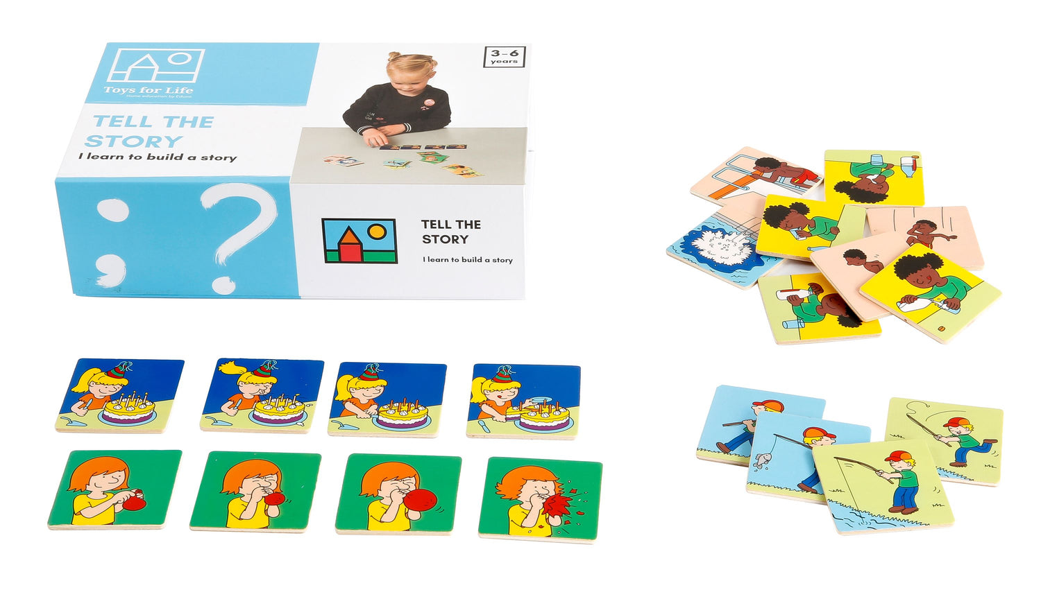 Erzählfähigkeiten entwickelt. Das Spiel enthält 20 Bildkarten.