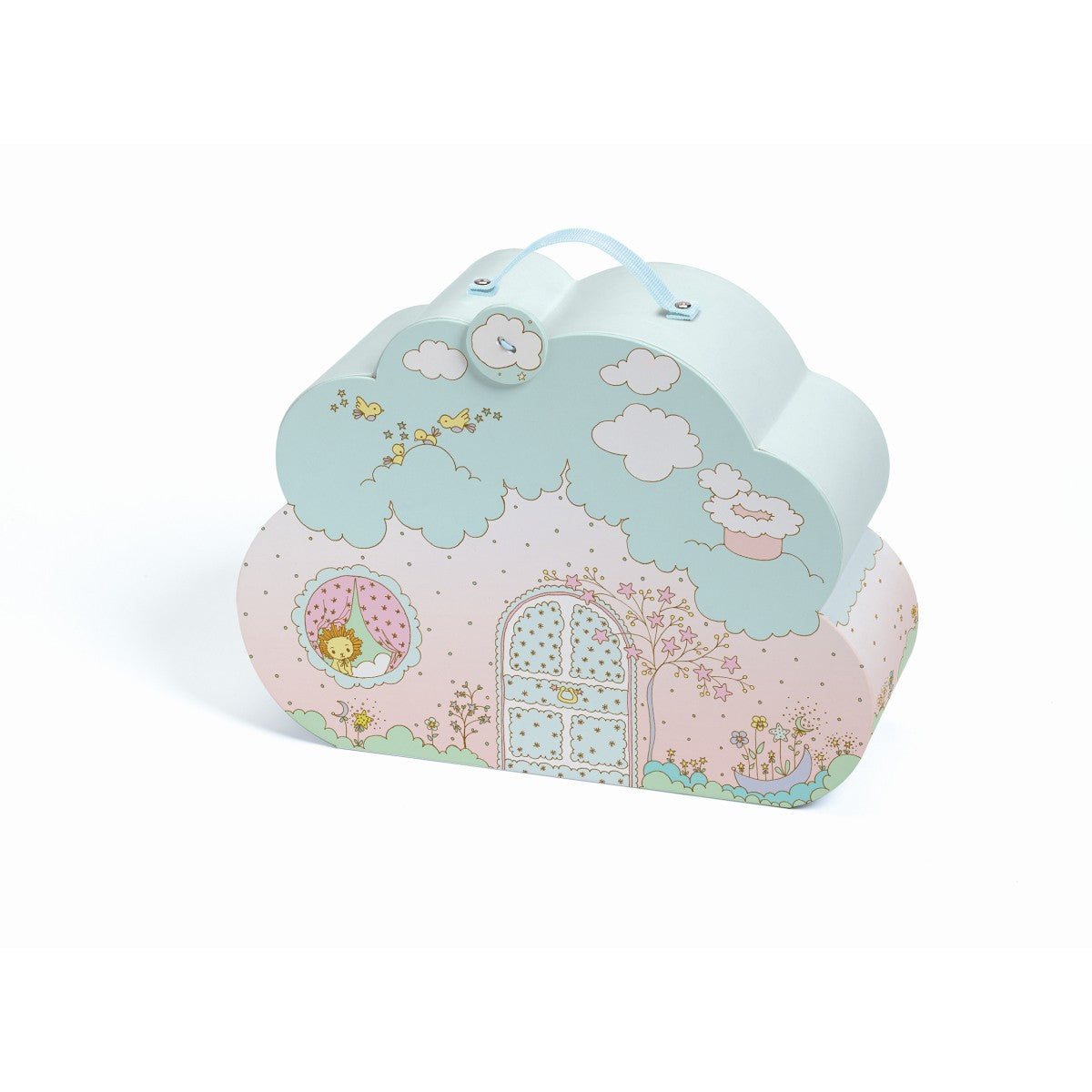 Das Wolkenhaus Tinyly von Djeco, in dem Sunny und Mia zu Hause sind ist ausgestattet mit einer Küche, einem Schlaf- und einem Esszimmer. Die Figuren Sunny die die Sonne verkörpert und ihrer Begleiterin Mia das Kätzchen werden mitgeliefert.