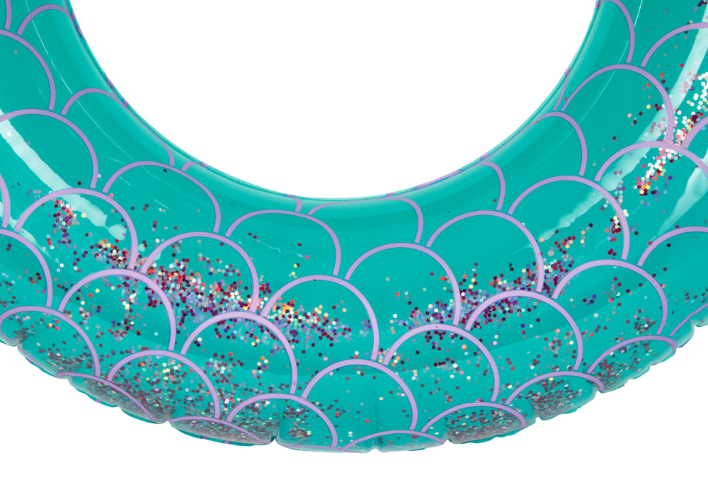 und einer schimmernden Flosse am Ring wird dieses beeindruckende Wasser-Spielzeug sofort zum Blickfang im Garten, im Schwimmbad oder am Strand.