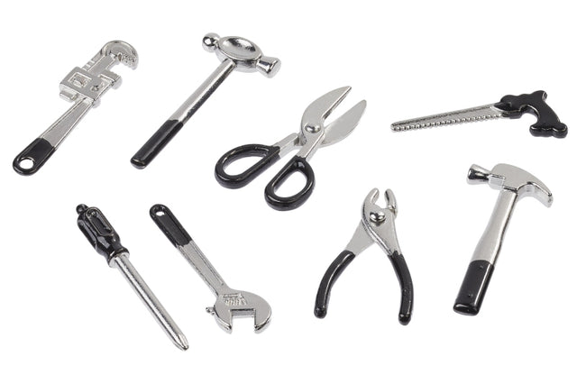 Dieses Werkzeugset (ca.3,5cm, 8-teilig) kann dem kleinen Wichtel eine große Hilfe sein, ob im Haushalt oder im Garten aber auch bei kleinen Reparaturen.