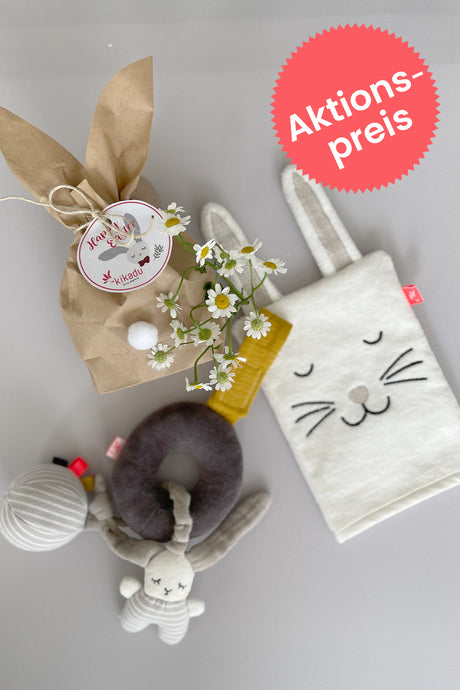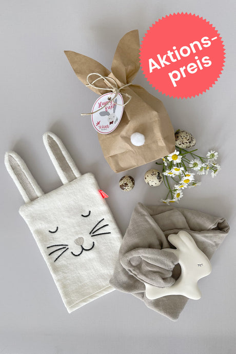 Osterhäschen-Set Waschlappen & Kautschuk Beißring