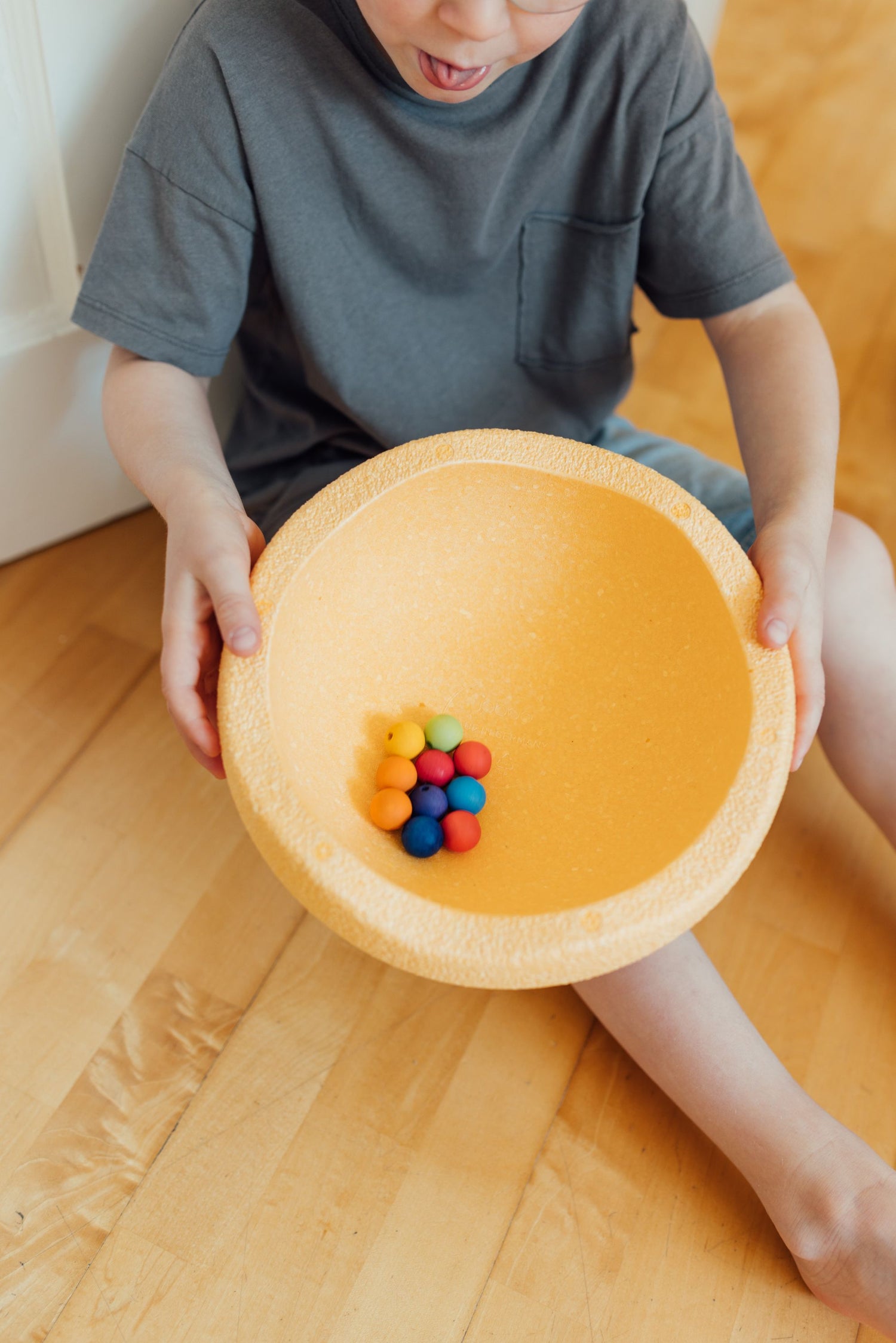 Der einzelne Stapelstein ist mit allen anderen Stapelsteinen und Balance Boards kombinierbar und eignet sich optimal für Gleichgewichtsübungen, dynamisches sitzen und viel Aktivität.