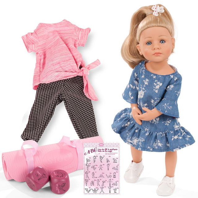 Im Lieferumfang enthalten sind: Puppe, Kleid, Chucks, T- Shirt, Hose, Yogamatte, zwei Yoga- Übungswürfel, Yoga- Übungsfibel, Haarklammer
