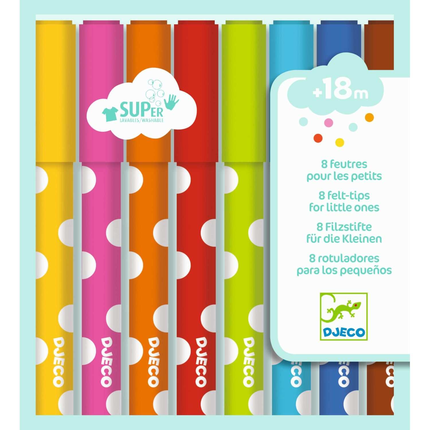 Die wunderbaren dicken Filzstifte DJ09001 von Djeco sind schon für die Kleinen geeignet. Durch die ergonomische Form der Stifte und die weiche dicke Spitze lassen sich die Stifte kindereicht führen. Hier kann jeder seiner Kreativität freien Lauf lassen.