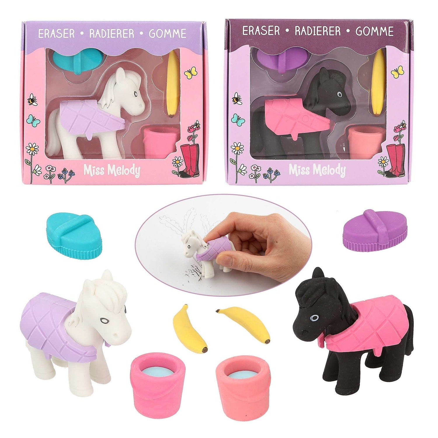 Das süßeste Radiergummi für echte Pferde-Fans: Ein 3-D-Pferd mit einer Satteldecke, einem Eimer Wasser und einer Banane. Zum Zusammenbauen, wieder Auseinandernehmen, Spielen und natürlich auch zum Radieren. Das Radiergummi Set von Miss Melody ist in schwarz und weiß erhältlich. Eine Farbauswahl ist nicht möglich und erfolgt zufällig!