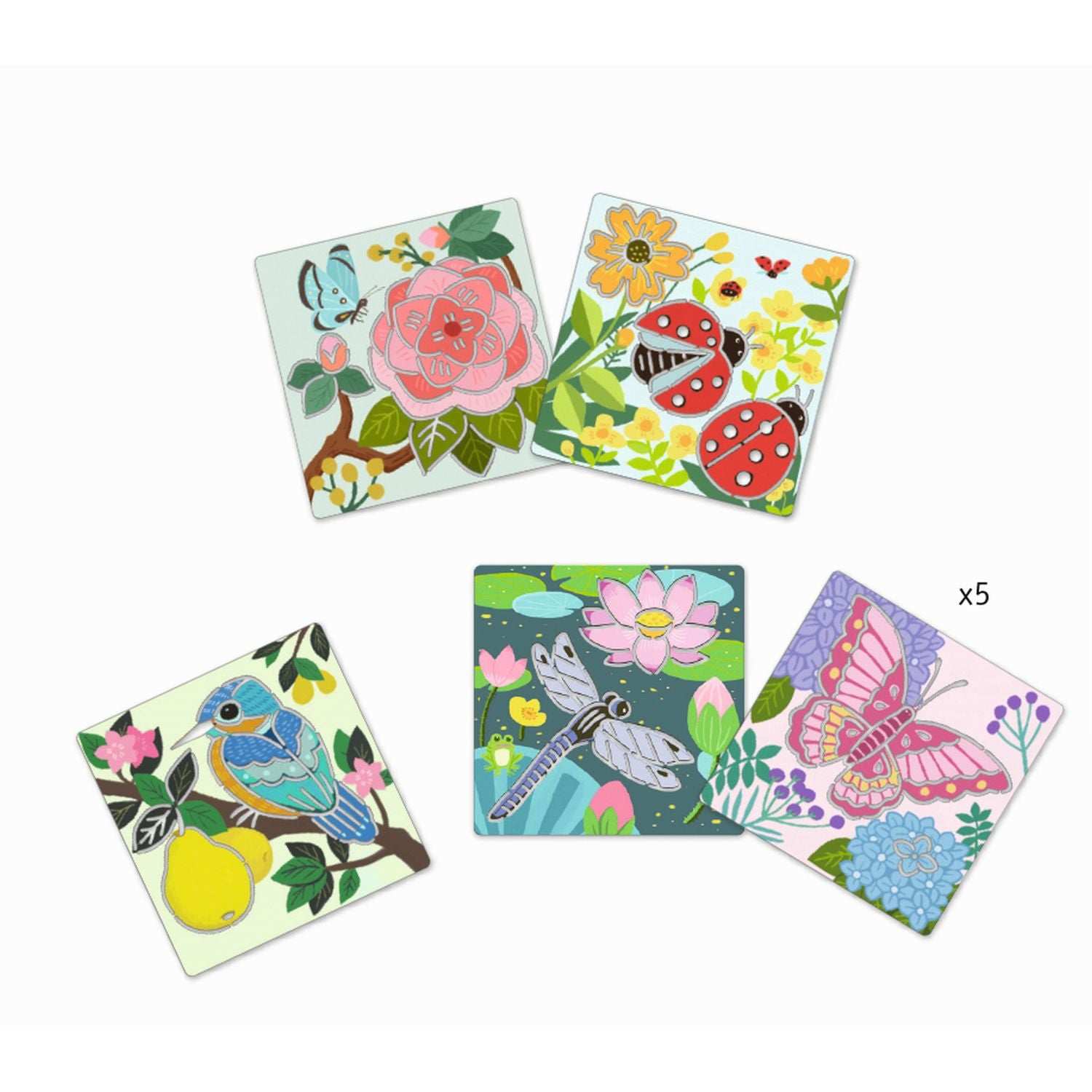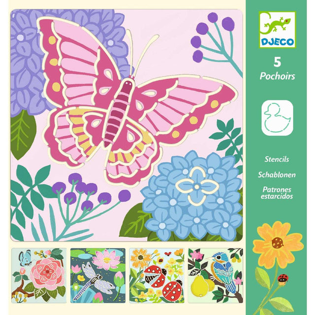 Lieferumfang: 5 Schablonen mit zauberhaften Bildmotiven aus der Natur