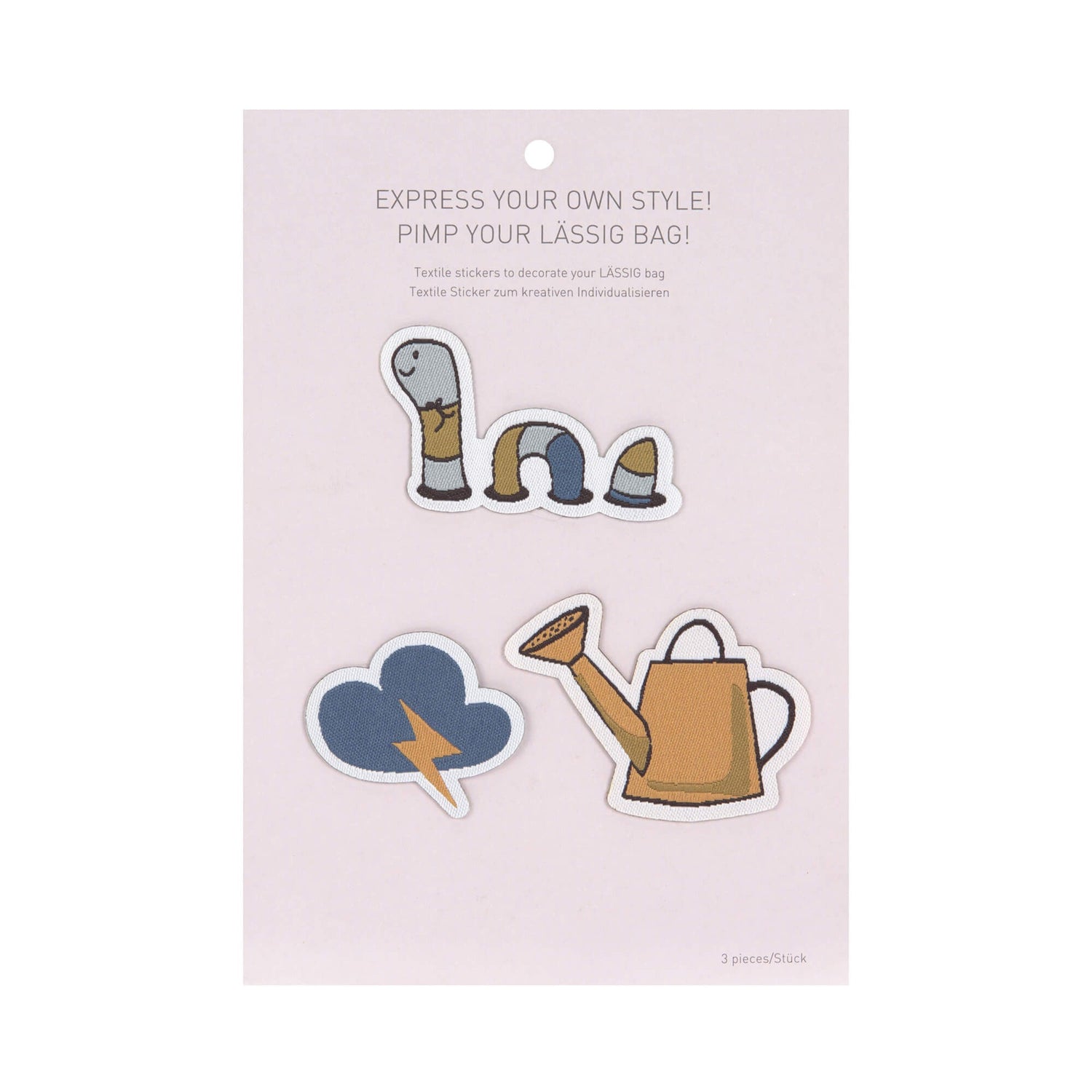 Das Außenmaterial ist wasserabweisend und zur individuellen Gestaltung des Koffers werden drei Textilsticker mitgeliefert.