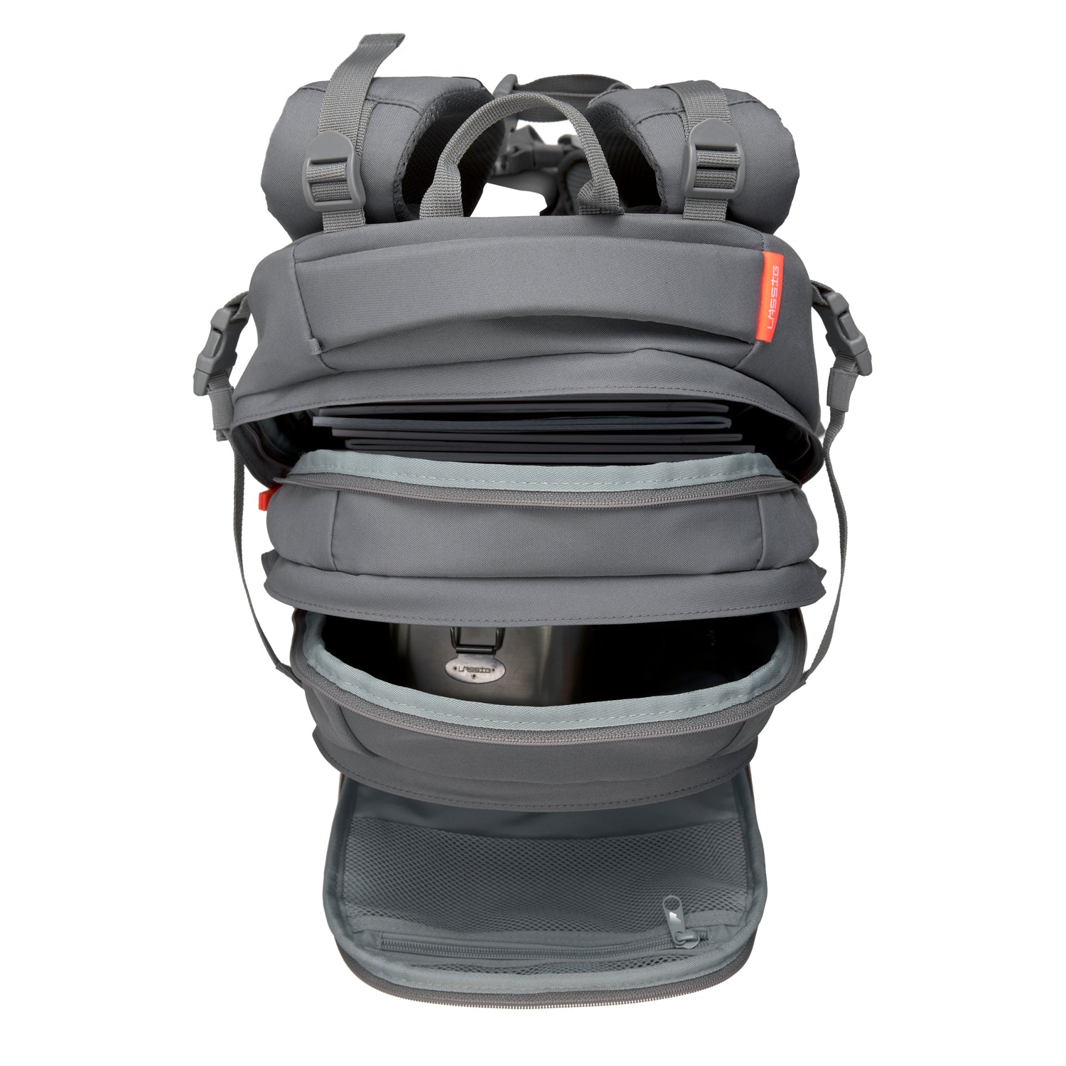Trotz seines geringen Gewichts von nur 1,29 Kilogramm bietet er einen großzügigen Stauraum von 30 Litern, sodass du all deine Schulutensilien bequem transportieren kannst. Neben den großen Hauptfächern bietet der Rucksack praktische Fächer für A5 Hefte, Bücher und dein Tablet. Besonders wichtig: Das Extrafach für dein Smartphone und die Powerbank mit Kopfhörer-Ausgang. Große Seitentaschen bieten Platz für die Trinkflasche oder den Regenschirm und sind mit einer Öffnung versehen, sollte mal etwas auslaufen. Helm oder Kleidungsstücke können easy am Gurtband befestigt werden. In vielen Innentaschen kannst du alle deine Sachen aufgeräumt verstauen. So kannst du ab jetzt eigenständig entscheiden, wie du dich organisierst!