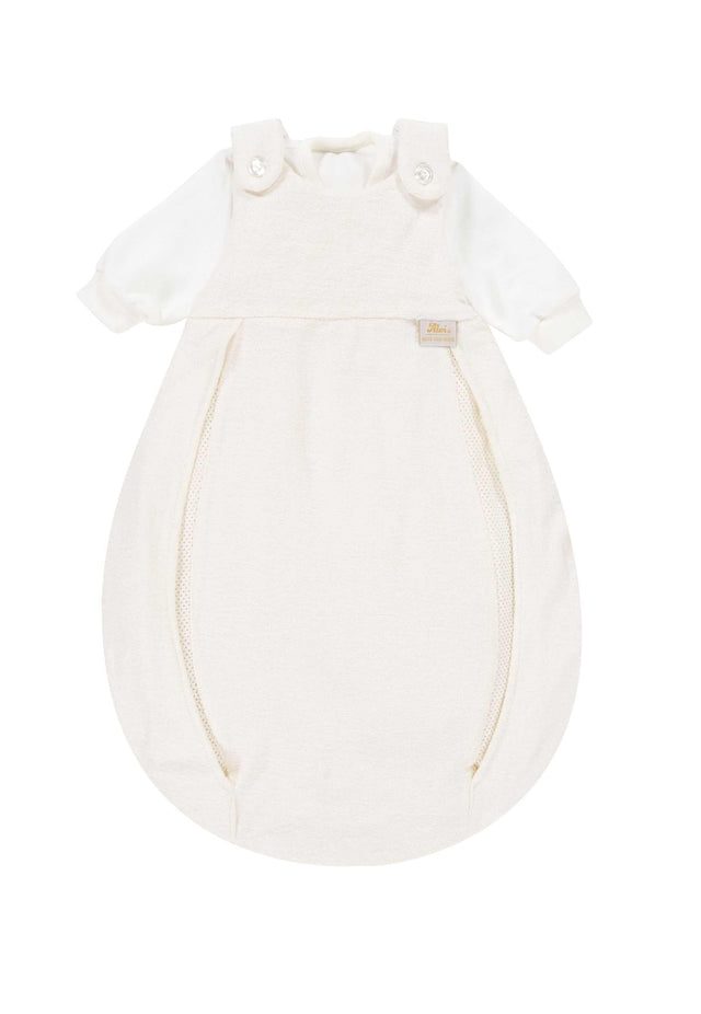 Das Baby-Mäxchen® mit Belüftungssystem 2tlg. in der Farbe weiß ist ein Schlafsack von Alvi, mit einem TOG-Wert von 2,5 und bietet somit eine optimale Wärmeisolierung.