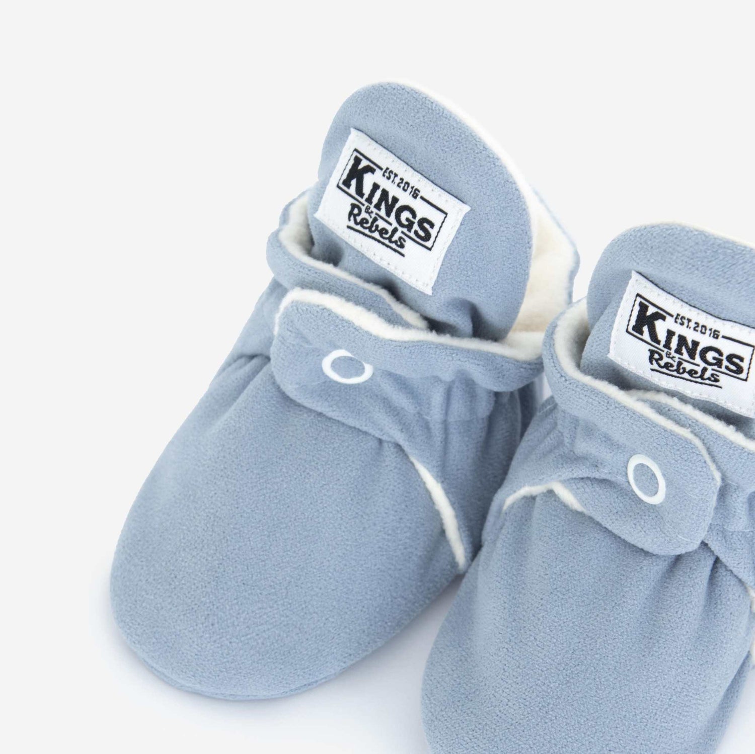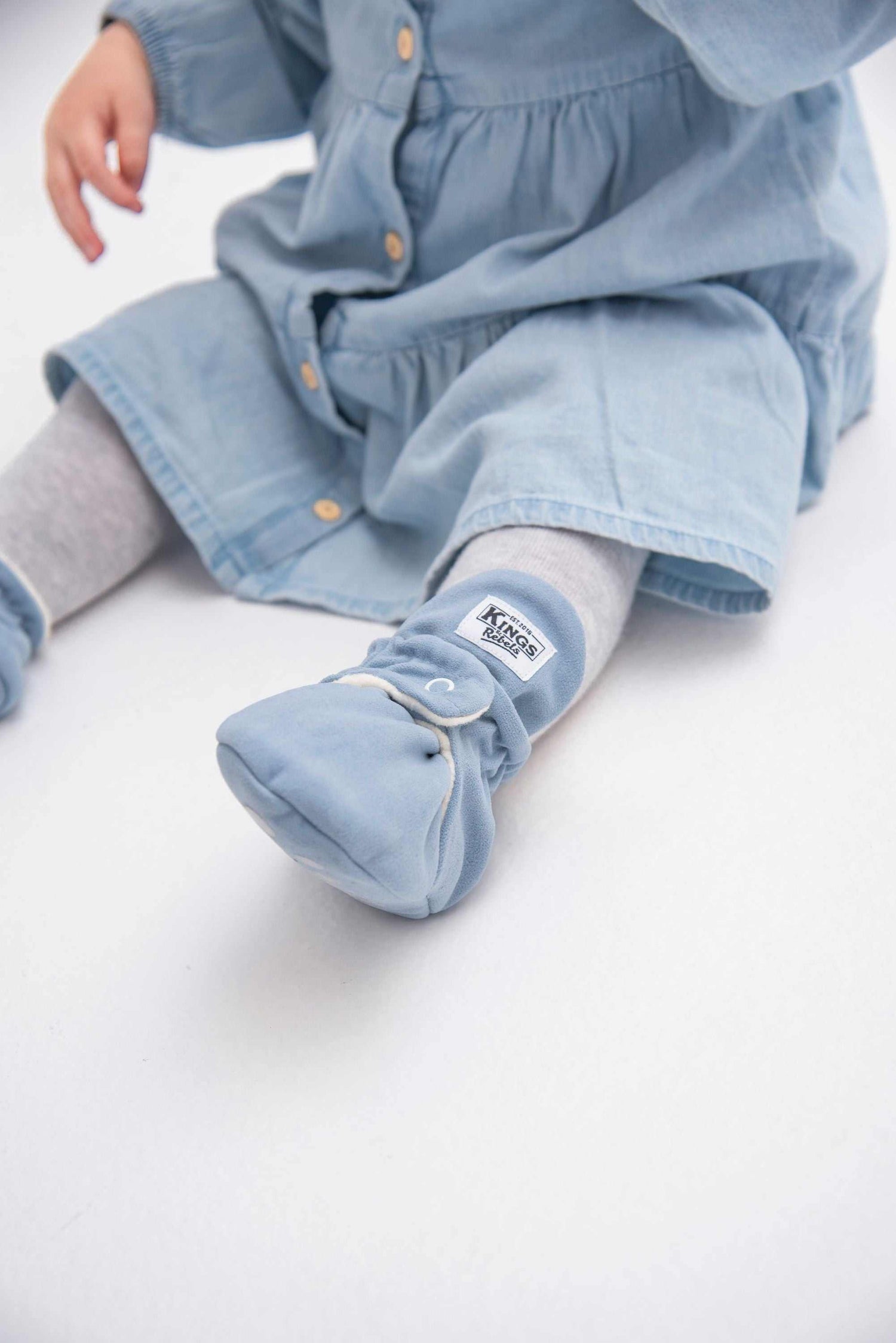 Die Kings & Rebels Baby Booties wurden mit einem einfachen und praktischen Druckknopf- Verschluss entworfen, was das Anziehen von strampelnden Babys in wenigen Sekunden ermöglicht. Der komplett um die Ferse verlaufende und über dem Knöchel sitzende, integrierte Gummizug verhindert auch bei sehr aktiven Babys das Herunterrutschen des Booties. Die Booties passen sich perfekt an die individuelle Form der Babyfüße an und schränken somit die natürliche Entwicklung der kleinen Babyfüße nicht ein. Alle Kings & Rebels Baby Booties werden in Handarbeit im eigenen Familienbetrieb hergestellt. ACHTUNG: Größe 12-24 Monate, Laufsohle mit Antirutsch- Noppen Farbe: Grey Innenmaterial: Fleece Außenmaterial: Veganes Kunstleder Größenübersicht: New Born (9 cm Länge) 3 Monate (10 cm Länge ) 6 Monate (11,5 cm Länge) 12 Monate (13 cm Länge) 18 Monate (14 cm Länge) 24 Monate (15 cm Länge)