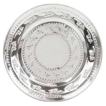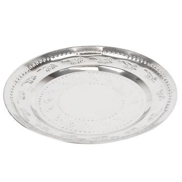 Dieser coole silberne Teller von Talking Tables im Boho- Style eignet sich perfekt für ein Grillfest oder eine Gartenparty im Sommer. Das Muster wird in Indien handgefertigt und wird ihre Gäste begeistern. Der Teller ist wiederverwendbar, einfach zu transportieren und abzuwaschen. Sie können auf ihm herzhafte oder süße Leckereien Servieren.