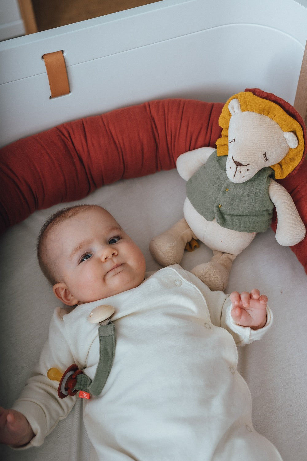 Schnullerkette Musselin Olive ist auf Lager und wird versandt, sobald es wieder verfügbar ist