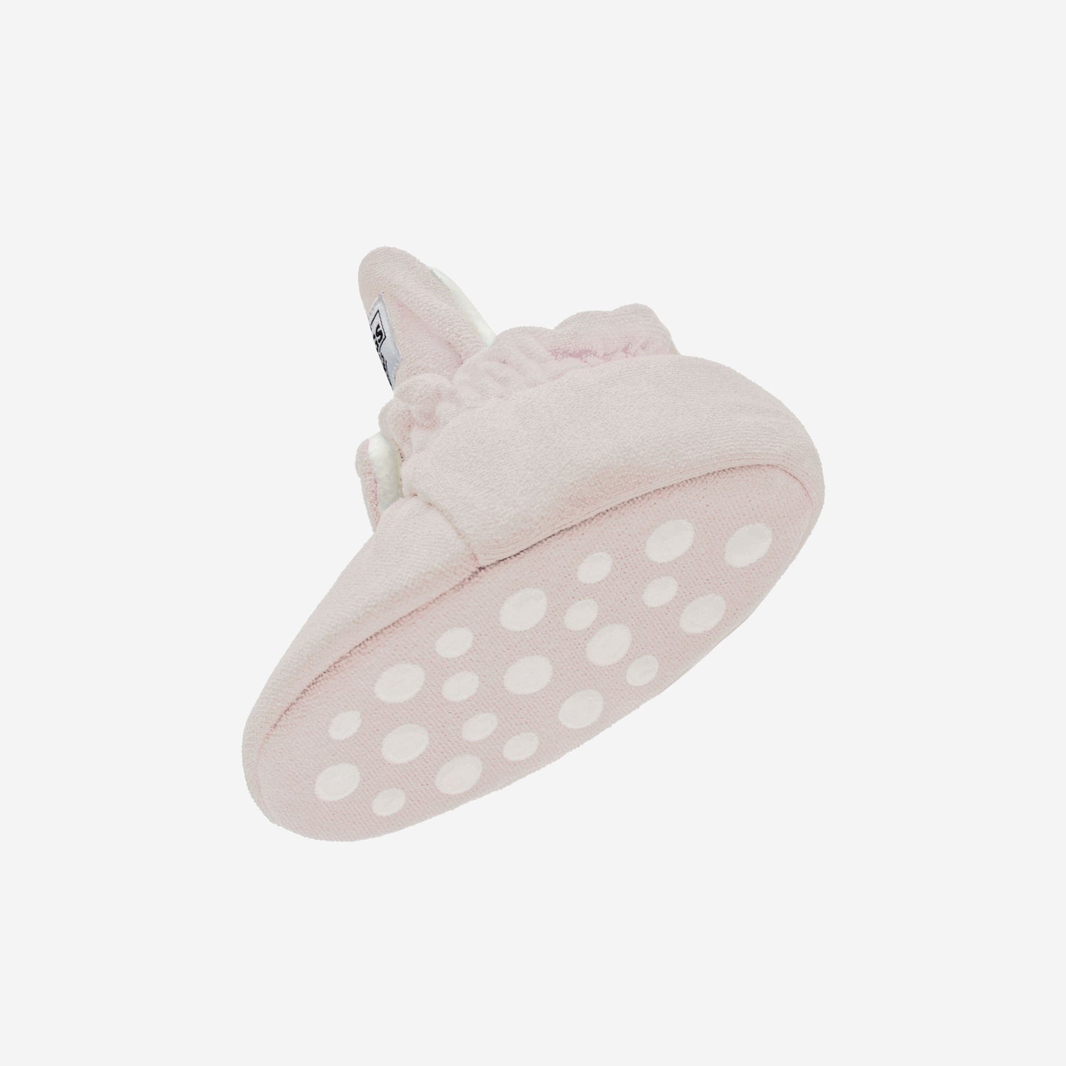 Der komplett um die Ferse verlaufende und über dem Knöchel sitzende, integrierte Gummizug verhindert auch bei sehr aktiven Babys das Herunterrutschen des Booties.