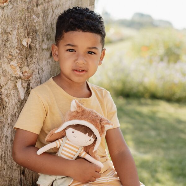 Darf ich vorstellen Waldfreund Sam, eine weiche Plüschpuppe im niedlichen Fuchskostüm. Zusammen mit dem kleinen Fuchs nimmt Sam dich mit auf ein Abenteuer im Wald, wo sie mit ihren tierischen Freunden allerlei Waldschätze wie Pilze, Eicheln und Tannenzapfen sammeln. Sam ist knuddelig und perfekt für kleine Hände. Sein süßes Gesicht und sein detailreiches Outfit machen ihn zu einem tollen Spielkameraden und zu einer schönen Dekoration für das Kinderzimmer. Erleben Sie die niedlichsten Abenteuer im Wald mit Waldfreund Sam! Die Kuschelpuppe Forest Friend Sam von Little Dutch ist ca. 35 cm groß und für Kinder ab 12 Monate geeignet.