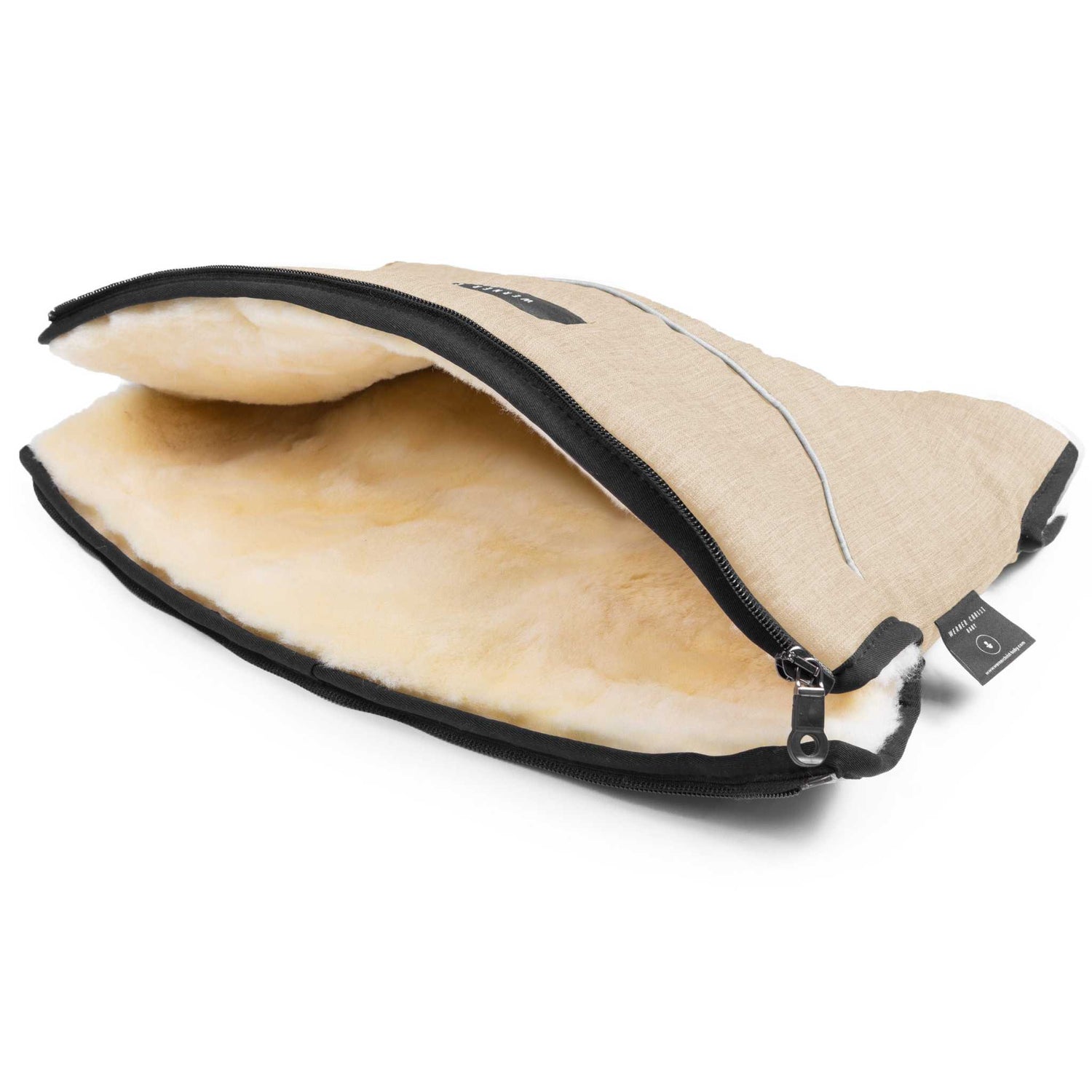 Der Handwärmer MOFFY verspricht warme Hände beim Spazierengehen mit Kinderwagen oder Buggy. Echtes Lammfell auf der Innenseite und maximaler Raum sorgen für ein wohlig warmes Gefühl.