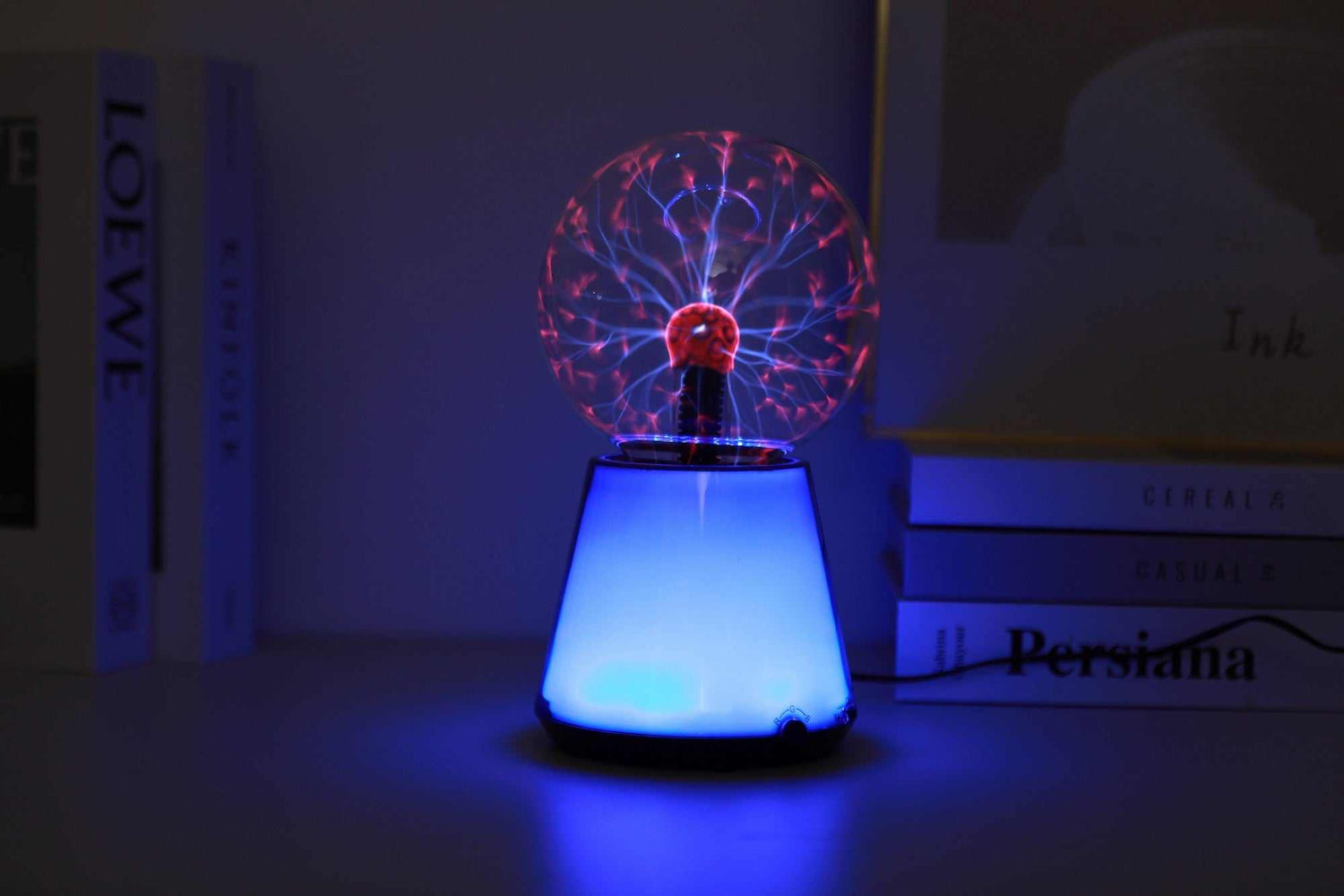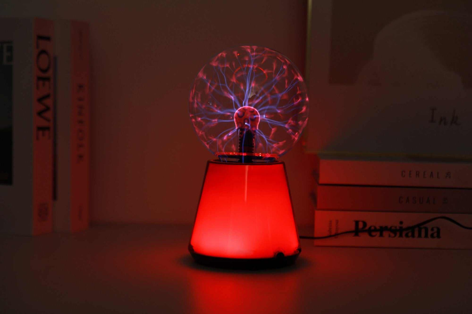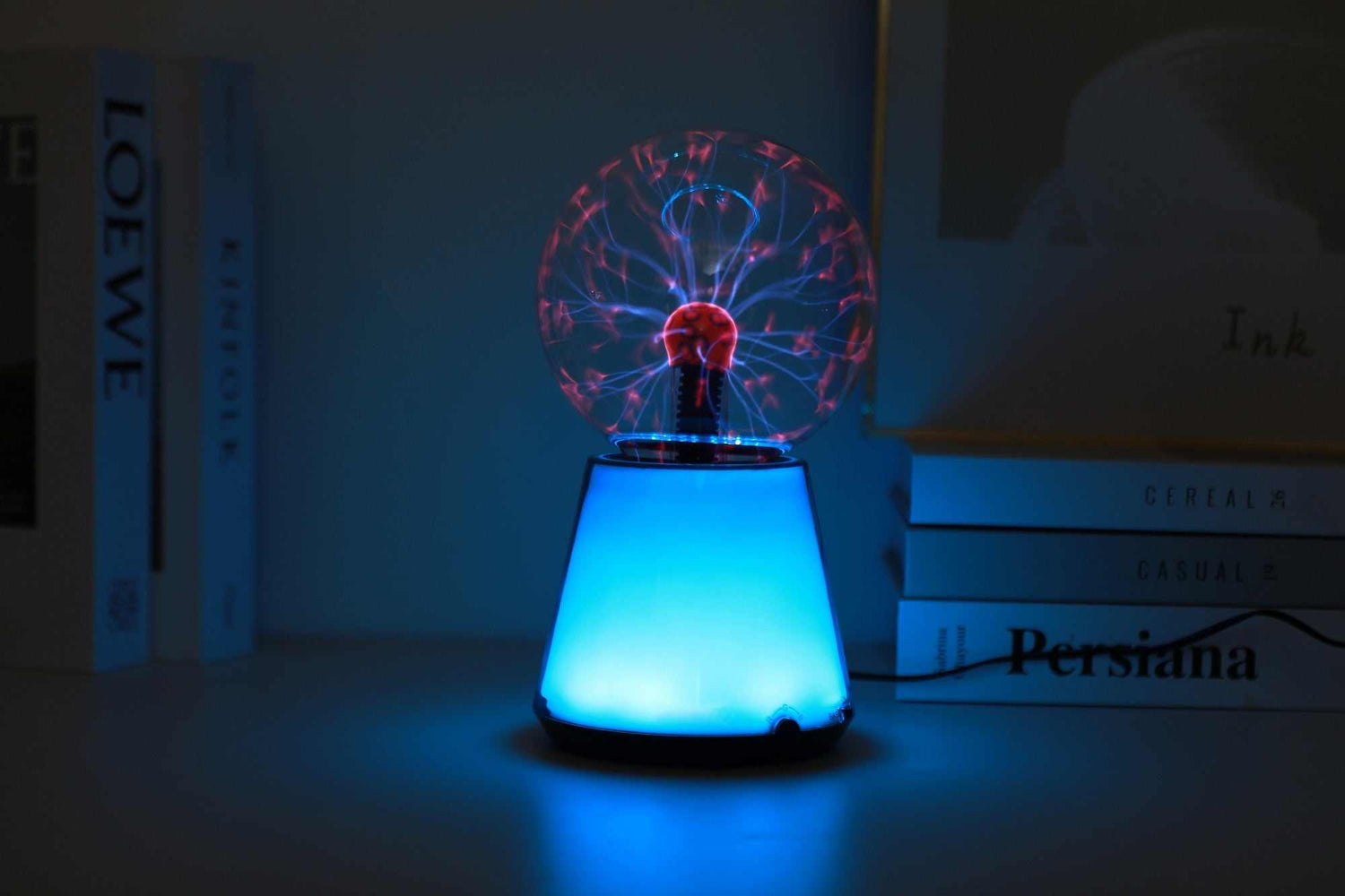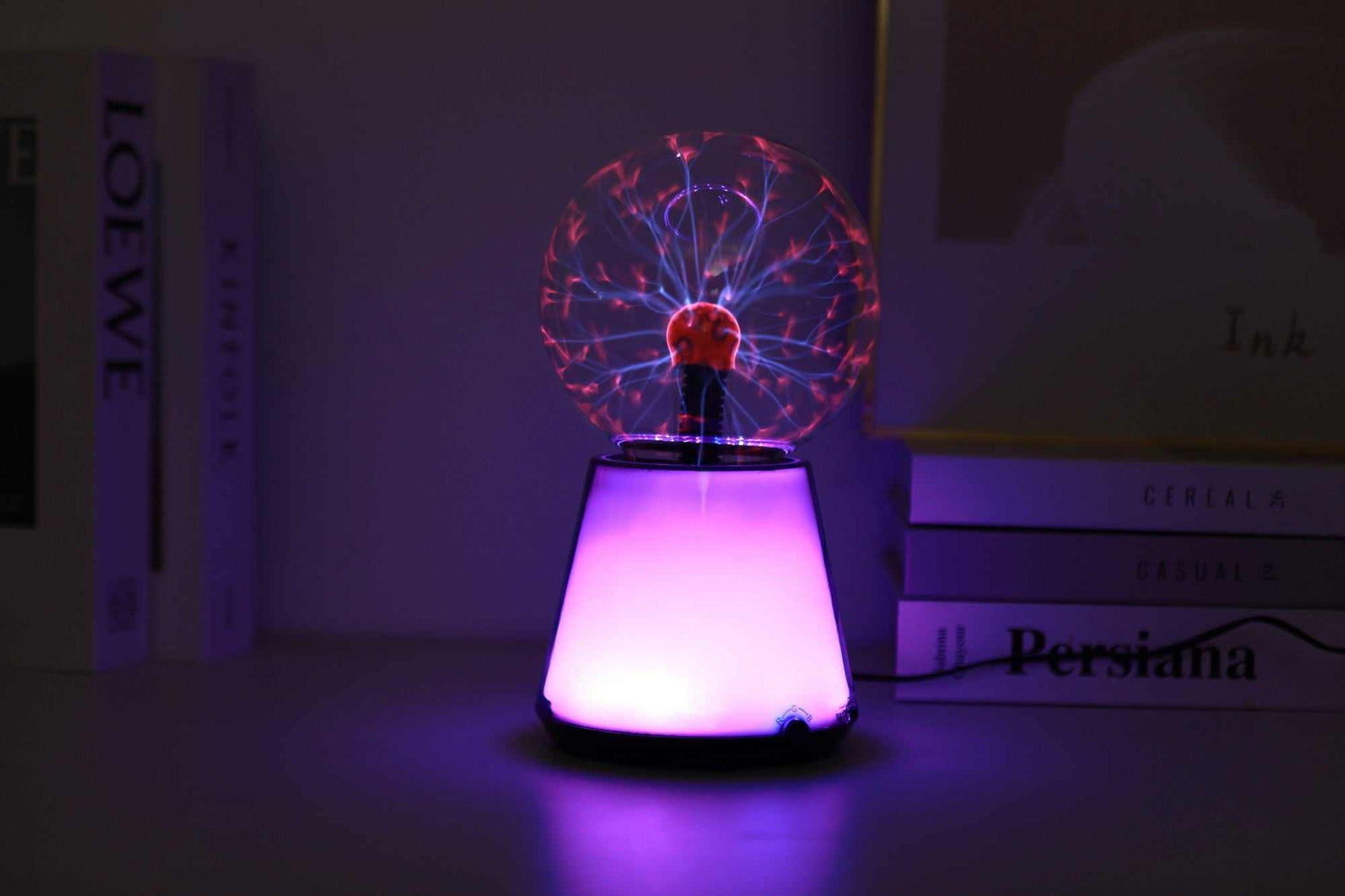 Die Plasmalampe mit farbwechselndem Sockel eignet sich hervorragend als Dekorationsobjekt für verschiedene Räume.