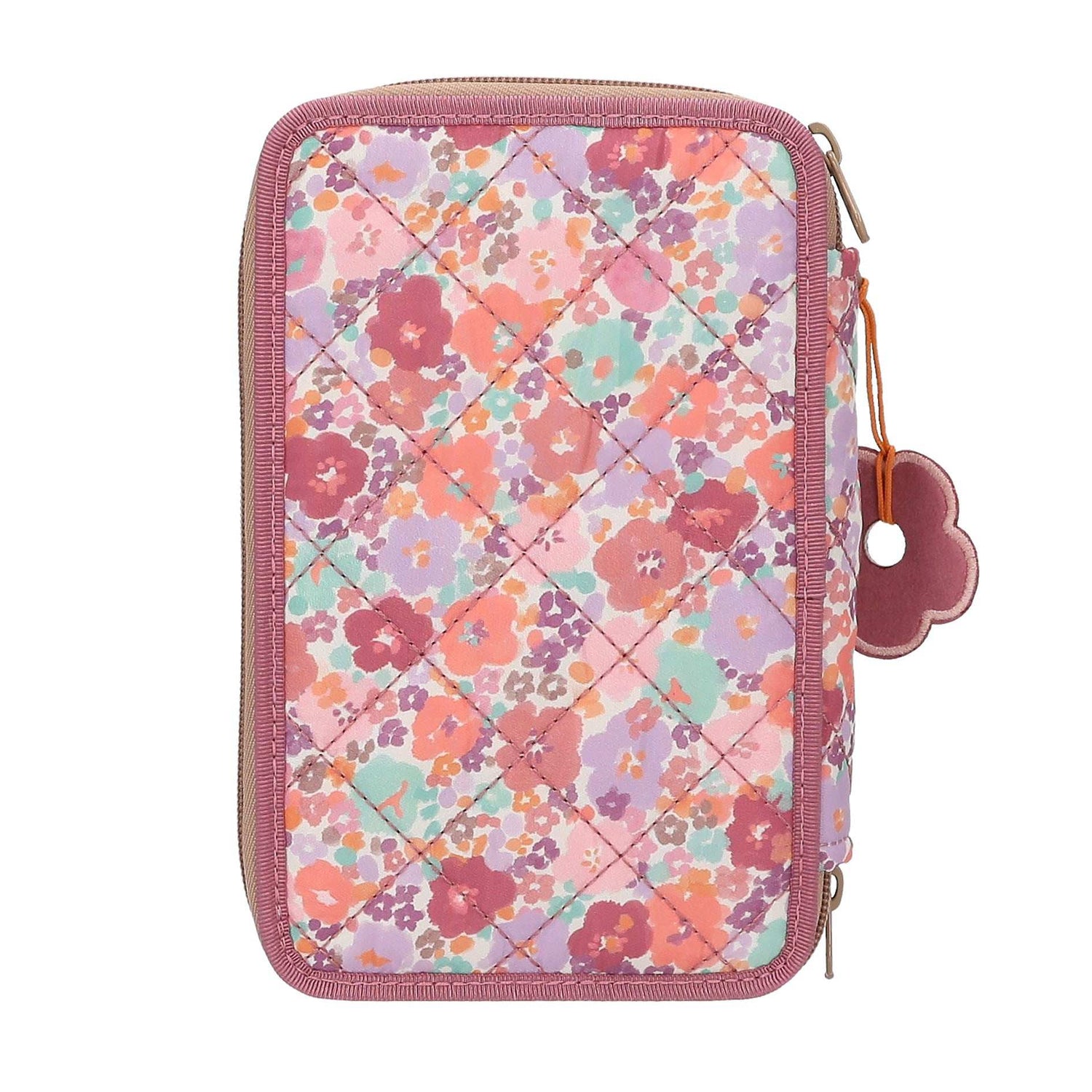 Fantastisch Floral: Die Federtasche aus der neuen TOPModel-Designserie hat auf der beerenfarbenen Front ein großes Modelmotiv mit einem supersüßen Hund und auf der Seite und Rückseite ein wunderschönes Blumenmuster mit trendiger Rauten-Steppung. Süßes Plus: der große Blumen-Anhänger am Reißverschluss. Die drei separaten Fächer sind komplett gefüllt mit je 18 Bunt- und Filzstiften, 2 Bleistiften, Anspitzer, Radierer, Lineal, Klebestift, Schere und einem kleinen Klett-Täschchen. Hauptmaterial: 100 Prozent Polyester