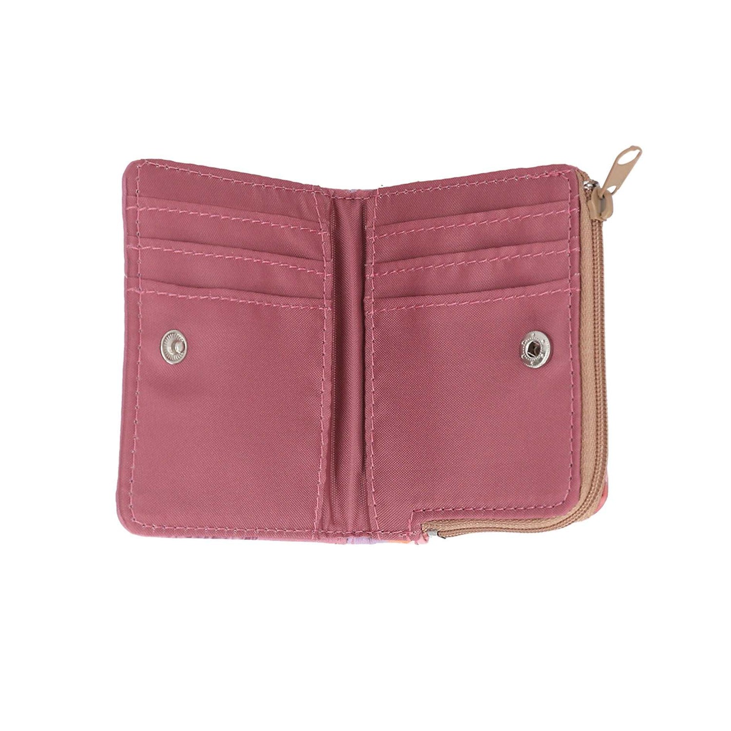 Auf der Rückseite ist der Geldbeutel mit einem wunderschönes Blumenmuster verziert. Mit Reißverschluss- Münzfach sowie Kartenfächern innen.