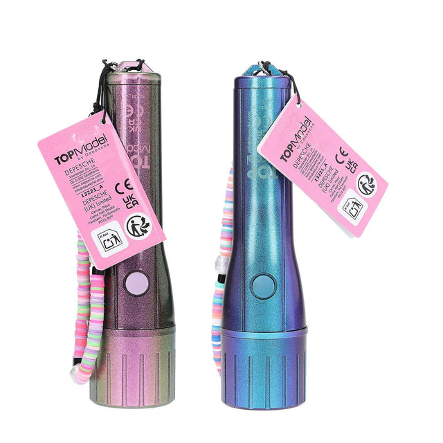 Glänzen mit stil:: Die beiden TOPModel-Taschenlampen sind elegant in Blau oder Grün-Rosa.