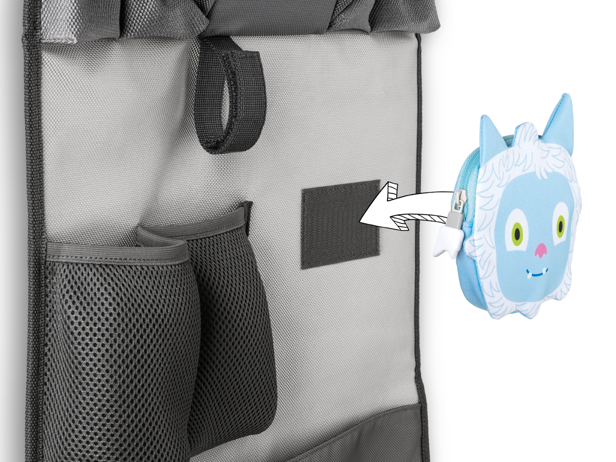 Erhältlich ist der Auto-Organizer in den Farben Beere, Hellblau und Anthrazit. Und nun das Beste zum Schluss: In jedem Auto-Organizer ist eine tonies® Mini-Tasche enthalten! Je nach Farbe bekommst du die Mini-Tasche Pirat, Fee oder Yeti mit dazu, kannst diese ganz einfach an den Auto-Organizer kletten oder mitnehmen und um den Hals tragen! So sind deine Lieblings-Tonies immer mit dabei.