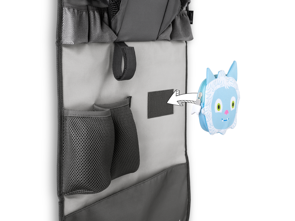 Der Auto-Organizer lässt sich ganz einfach am Autositz befestigen und bietet Platz für Toniebox, Tonies, Lauscher, Trinkflasche und mehr! Zudem ist er mit der tonies® USB- Ladestation kompatibel - so lässt sich die Toniebox auch während der Fahrt einfach aufladen! Dank des robusten und einfach zu reinigenden Materials hält er auch matschigen Kinderschuhen Stand.