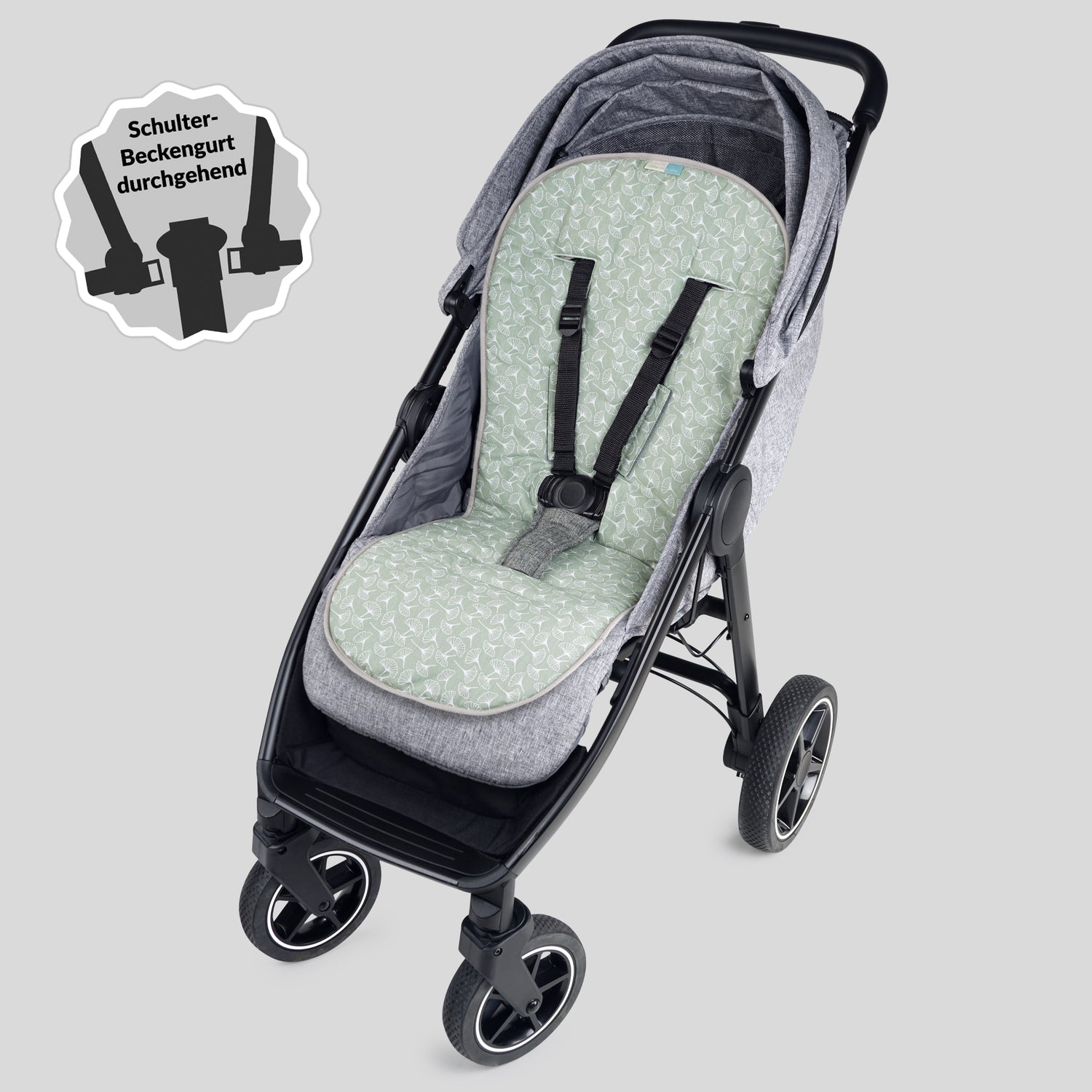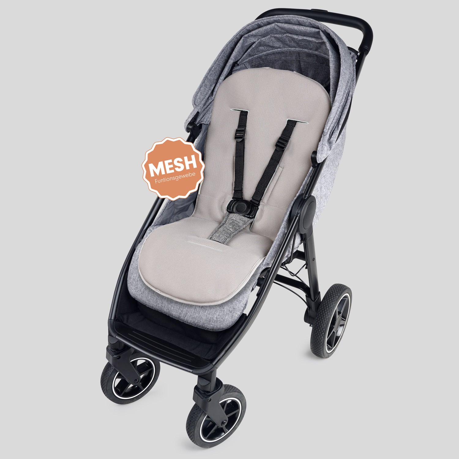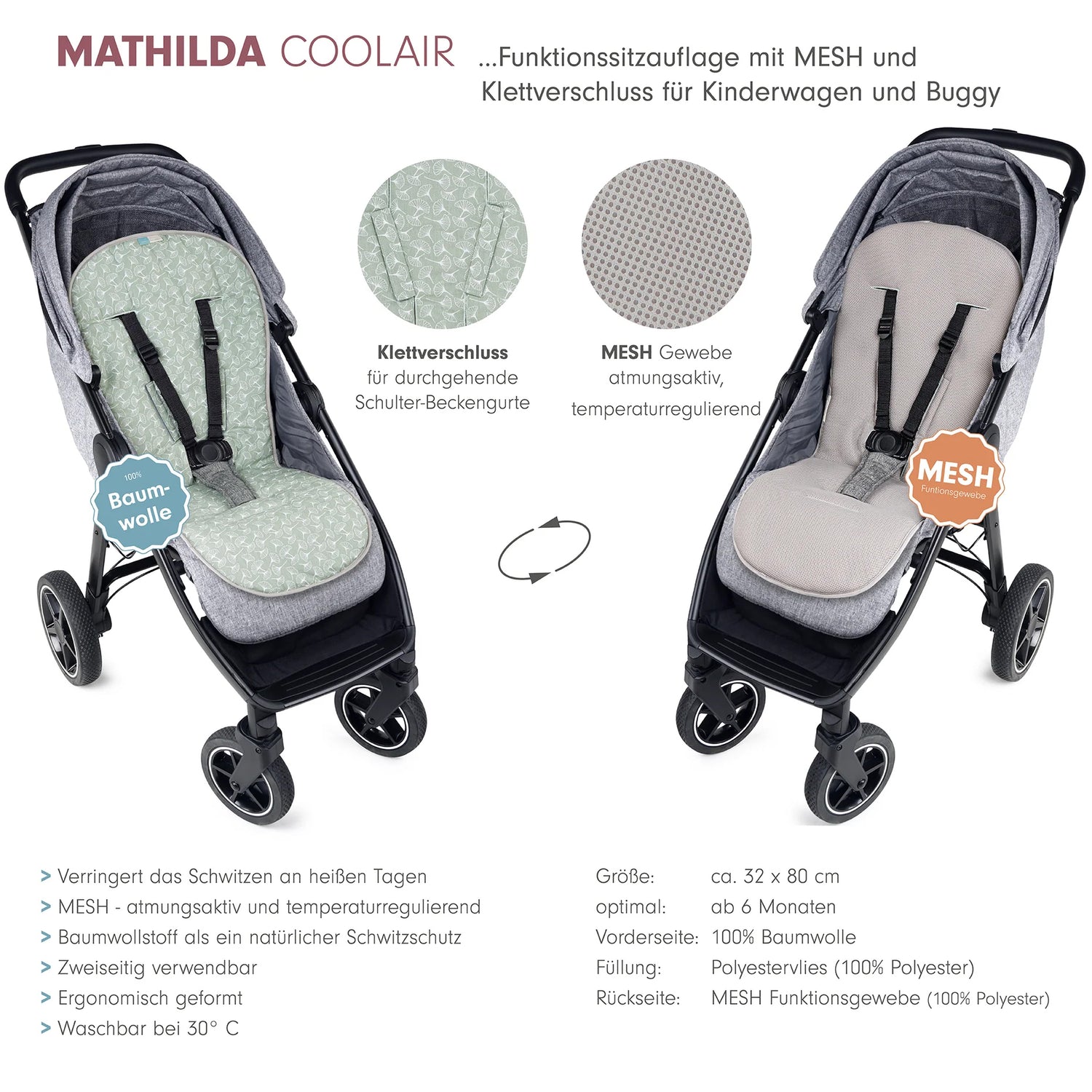 Die Mathilda Coolair von Priebes ist eine zweiseitige Funktionsauflage für Kinderwagen und Buggys mit Klettverschluss.