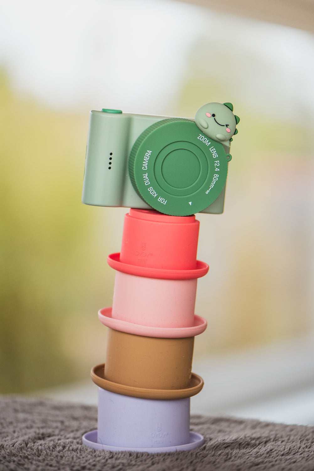Fügen Sie eine Prise Magie und Sicherheit mit der im Lieferumfang enthaltenen Dino- geformten Linsenabdeckung hinzu.
