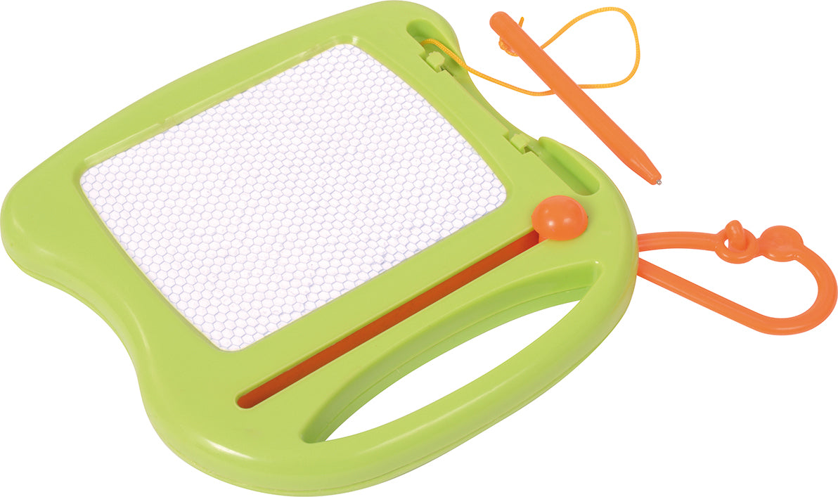 Wie von Zauberhand entsteht ein Motiv, wenn man mit dem Stift über die Zeichenfläche fährt. Die Magnetspitze zieht das dunkle Eisenpulver an die weiße Oberfläche. Mit dem Schieber lässt sich das Bild im Nu wieder löschen. Mit Karabinerhaken. Diese tolle Magnetzeichentafle von Eduplay garantiert viele Stunden Zeichenspaß!